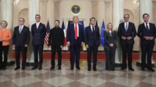 واستقبل البيت الأبيض القادة الأوروبيين المشاركين في الاجتماع، لمناقشة مفاوضات وقف الحرب بين روسيا وأوكرانيا، ووصل كل من الرئيس الأوكراني فولوديمير زيلينسكي، ورئيسة المفوضية الأوروبية أورسولا فون دير لاين، ورئيس الوزراء البريطاني كير ستارمر، والرئيس الفرنسي إيمانويل ماكرون، والمستشار الألماني فريدريش ميرتس، ورئيسة الوزراء الإيطالية جورجا ميلوني، والرئيس الفنلندي ألكسندر ستوب، والأمين العام لحلف الناتو مارك روته.