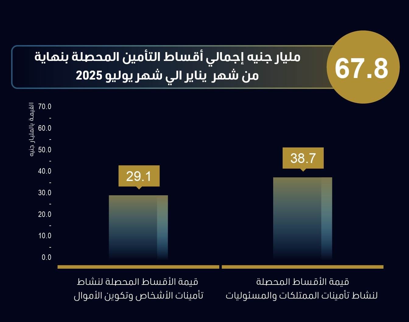 - 67.8 مليار جنيه إجمالي أقساط التأمين المحصلة بنهاية يوليو 2025