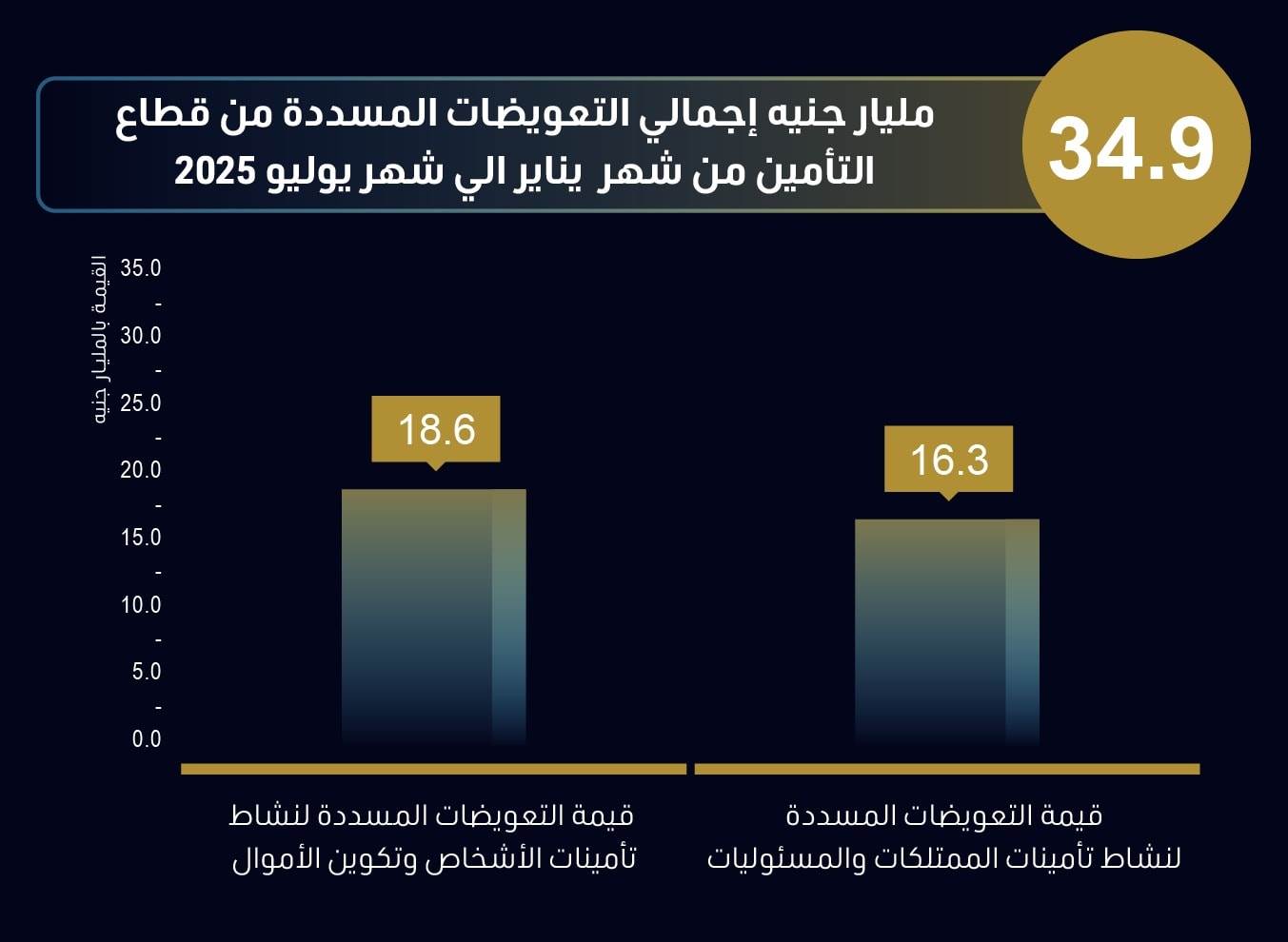 - 34.9 مليار جنيه إجمالي التعويضات المسددة من قطاع التأمين نهاية يوليو 2025