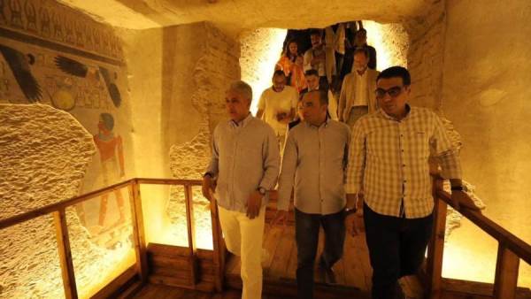 افتتح، اليوم شريف فتحي وزير السياحة والآثار بمرافقة الدكتور محمد إسماعيل خالد الأمين العام للمجلس الأعلى للآثار، والدكتور هشام أبو زيد نائب محافظ الأقصر، والدكتورة نوريا سانز مدير مكتب اليونسكو الإقليمي بالقاهرة مقبرة الملك أمنحتب الثالث بمنطقة وادي الملوك بالبر الغربي بالأقصر، بحضور المهندس أحمد يوسف مساعد وزير السياحة والآثار لشئون الاستراتيجيات والقائم بأعمال الرئيس التنفيذي للهيئة المصرية العامة للتنشيط السياحي، والاستاذ أحمد أيوب رئيس مجلس إدارة غرفة المنشآت الفندقية، وذلك بعد الانتهاء من مشروع ترميمها الذي استمر أكثر من ٢٠ عاما في إطار مشروع ”حفظ اللوحات الجدارية لمقبرة الملك أمنحتب الثالث"، الذي تم تنفيذه بالتعاون بين المجلس الأعلى للآثار وجامعتي واسيدا وهيجاڜي نيبون اليابانيتين تحت رعاية منظمة اليونسكو- الصندوق الاستئماني الياباني.