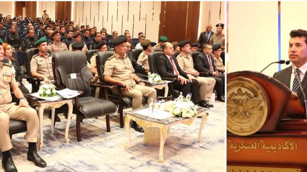 فيما أشاد الدكتور / أشرف صبحى وزير الشباب والرياضة بالجهود المخلصة التى تبذلها الأكاديمية العسكرية المصرية فى تأهيل المتدربين وفقاً لمنهج علمى وتدريبى متكامل وتزويدهم بأعلى درجات الإنضباط الذاتى ليكونوا خير قدوة فى كافة الأماكن التى يشغلونها ، كما أوصى المتدربين بتعظيم الإستفادة بما إكتسبوه من قيم ومبادئ وطنية نبيلة ودراسة علمية راقية بين جنبات هذا الصرح التعليمى ، مختتماً كلمته بتقديم التهنئة بمناسبة ذكرى إنتصارات أكتوبر المجيدة وتوجيه الشكر للقوات المسلحة على دعمها لأبناء الوطن بمختلف القطاعات ، وأختتمت الإحتفالية بتبادل الدروع وتكريم المتدربين .