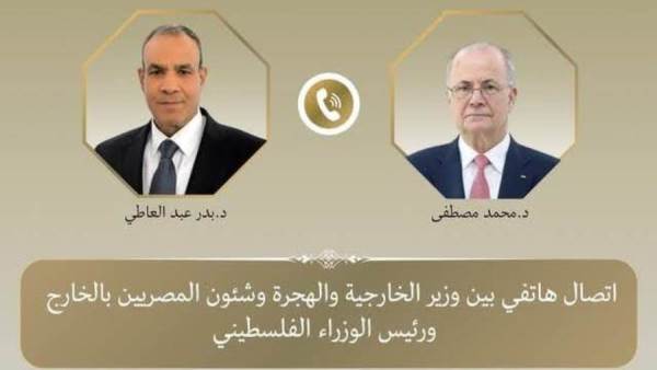 جرى اتصال هاتفي يوم الجمعة ١٧ أكتوبر بين د. بدر عبد العاطي وزير الخارجية والهجرة وشئون المصريين بالخارج ود. محمد مصطفى رئيس الوزراء الفلسطيني، وذلك لتناول التحضيرات الجارية لمؤتمر التعافي المبكر وإعادة الإعمار والتنمية في غزة المقرر عقده في القاهرة خلال النصف الثاني من نوفمبر.