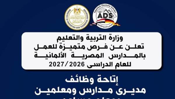 وزارة التربية والتعليم تعلن عن فرص متميزة للعمل بالمدارس المصرية الألمانية للعام الدراسى 2026 / 2027