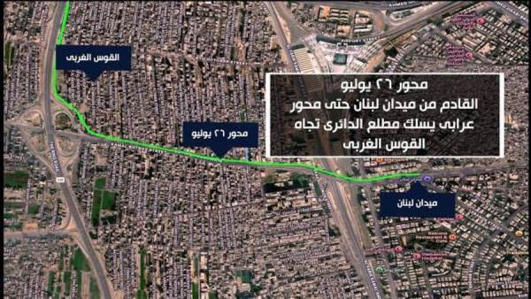 القادم من ميدان لبنان حتى محور عرابي يسلك مطلع الطريق الدائري في اتجاه القوس الغربي.
