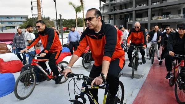 حيث قام الوزراء بجولة داخل أرجاء النادي بالدراجات، الذي أُقيم على أحدث الطرز الإنشائية ويضم مجموعة متكاملة من المنشآت الرياضية والخدمية والاجتماعية، منها ملاعب كرة القدم الخماسية والتنس والاسكواش، ومجمع حمامات السباحة، وصالة الجيمانيزيوم، والمبنى الاجتماعي، والمطاعم والكافيتريات، بما يجعله نموذجاً متكاملاً للأندية الحديثة التي توفر خدمات متكاملة للأعضاء وروادها من مختلف الفئات العمرية، اعقبها مباراة كرة قدم بين السادة الوزراء.