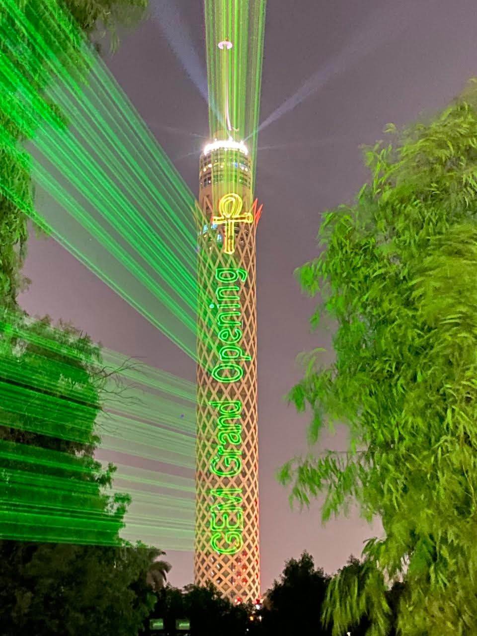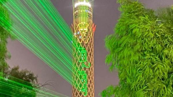 إضاءة برج القاهرة بشعار افتتاح المتحف المصري الكبير لليوم الثاني احتفالًا بالحدث العالمي