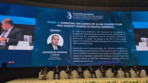 حيث شارك الدكتور ممتاز كمتحدث في جلسة بعنوان "قانون المنافسة في الأسواق الرقمية: استعراض أفضل الممارسات"، والتي تناولت مناقشة وتقييم تأثير الذكاء الاصطناعي على المنافسة في أسواق السلع والأسواق الرقمية، وكيفية التعامل مع التحديات التي تواجه المنافسة في الأسواق الرقمية، حيث استعرض التجربة المصرية في هذا المجال.