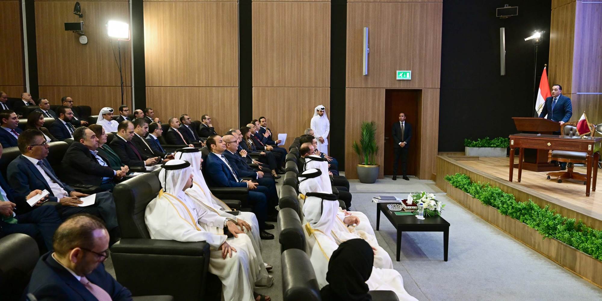 وقال الدكتور مصطفى مدبولي: اسمحوا لي في البداية أن أتوجه أولا بالشكر والتهنئة للرئيس عبدالفتاح السيسي، رئيس الجمهورية، وأخيه صاحب السمو الشيخ تميم بن حمد آل ثاني، أمير دولة قطر، على نجاحنا في الوصول إلى هذا الاتفاق، والذي لولا توجيهاتهما وحرصهما ومتابعتهما الشخصية، ما كان تحقق هذا الاتفاق على أرض الواقع. وأضاف رئيس الوزراء: كما ذكر مُقدم الفعالية، كانت زيارة الرئيس عبدالفتاح السيسي، رئيس الجمهورية، إلى العاصمة القطرية "الدوحة" والاتفاق مع شقيقه صاحب السمو الشيخ تميم بن حمد آل ثاني، أمير دولة قطر، على ضخ استثمارات قطرية في مصر، هي البداية لتفعيل هذا المشروع العملاق.