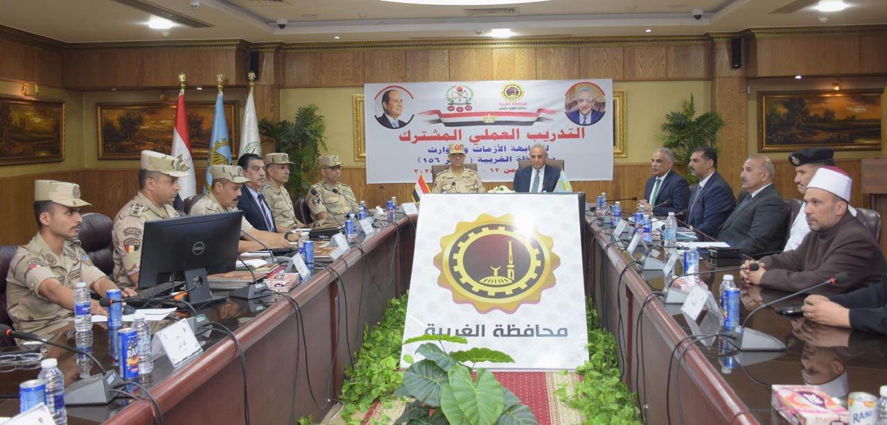 فى إطار حرص القوات المسلحة على التعاون مع المجتمع المدنى والتنسيق مع كافة أجهزة ومؤسسات الدولة نفذت قوات الدفاع الشعبى والعسكرى بالتعاون مع محافظة الغربية مشروعاً للتدريب العملى المشترك لإدارة الأزمات والكوارث بمشاركة الأجهزة التنفيذية للمحافظة وذلك للوقوف على مدى الجاهزية والإستعداد لمجابهة المواقف الطارئة بإستخدام الإمكانيات المتاحة وكذا تنمية مهارات العناصر التخصصية , وفى نهاية التدريب العملى تم تكريم عدد من أسر الشهداء بالمحافظة .