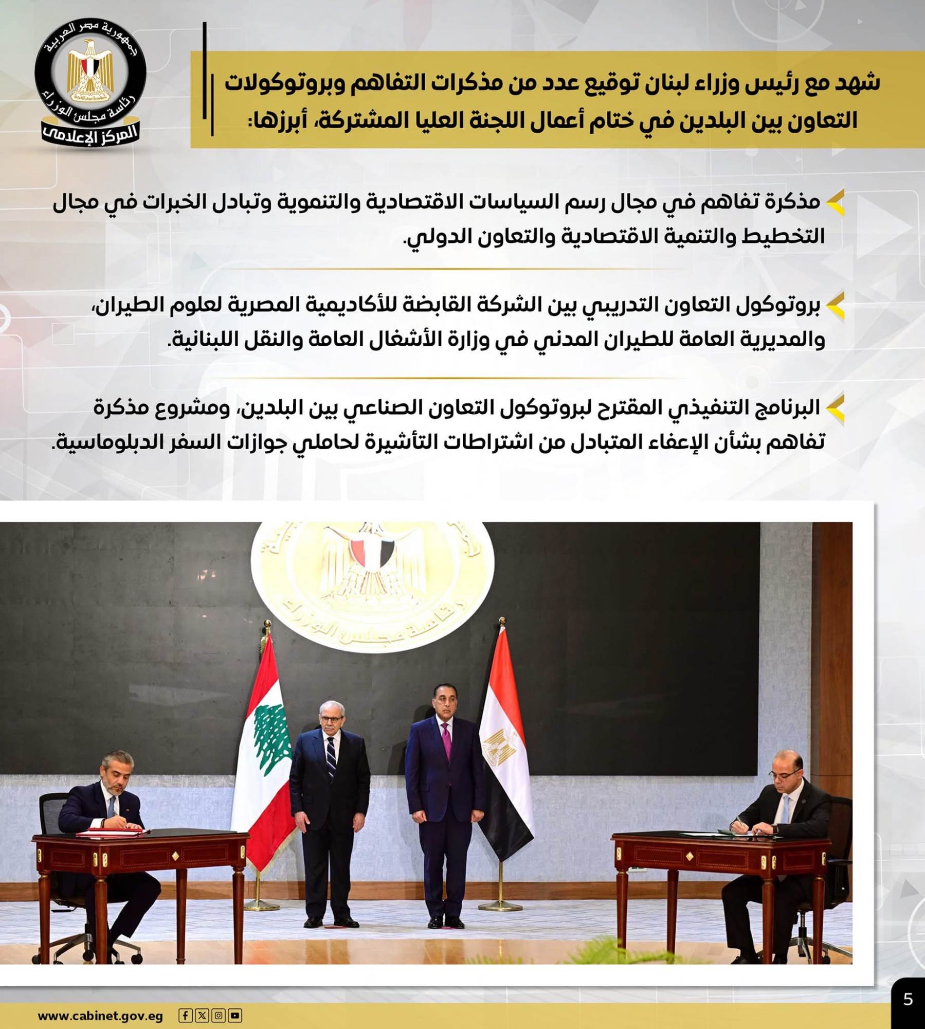 كما ترأس ونظيره اللبناني اجتماع اللجنة العليا المصرية اللبنانية المشتركة لاستعراض ملفات التعاون المشترك، مشيرًا إلى توجيه الرئيس بتقديم الدعم للحكومة اللبنانية، مؤكدًا دعم مصر للجهود السياسية والدبلوماسية لتحقيق الاستقرار في لبنان، ونوه خلال مؤتمر صحفي إلى استعداد الشركات المصرية للمشاركة في مجالات التنمية والتشييد بلبنان.