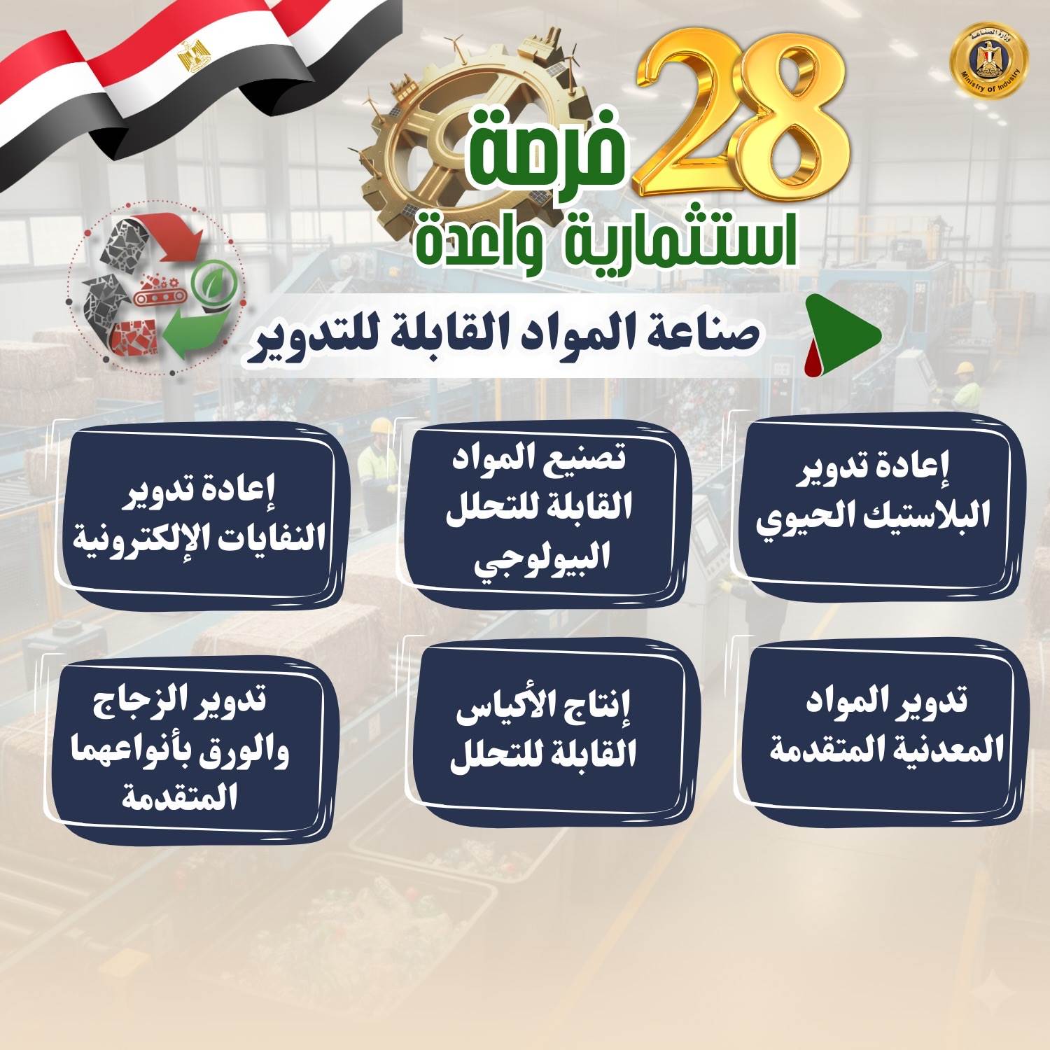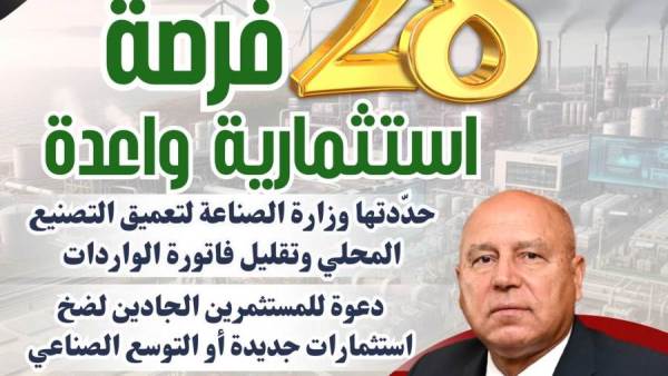 تعرف بالتفصيل على الـ28 فرصة استثمارية واعدة المحددة من وزارة الصناعة
