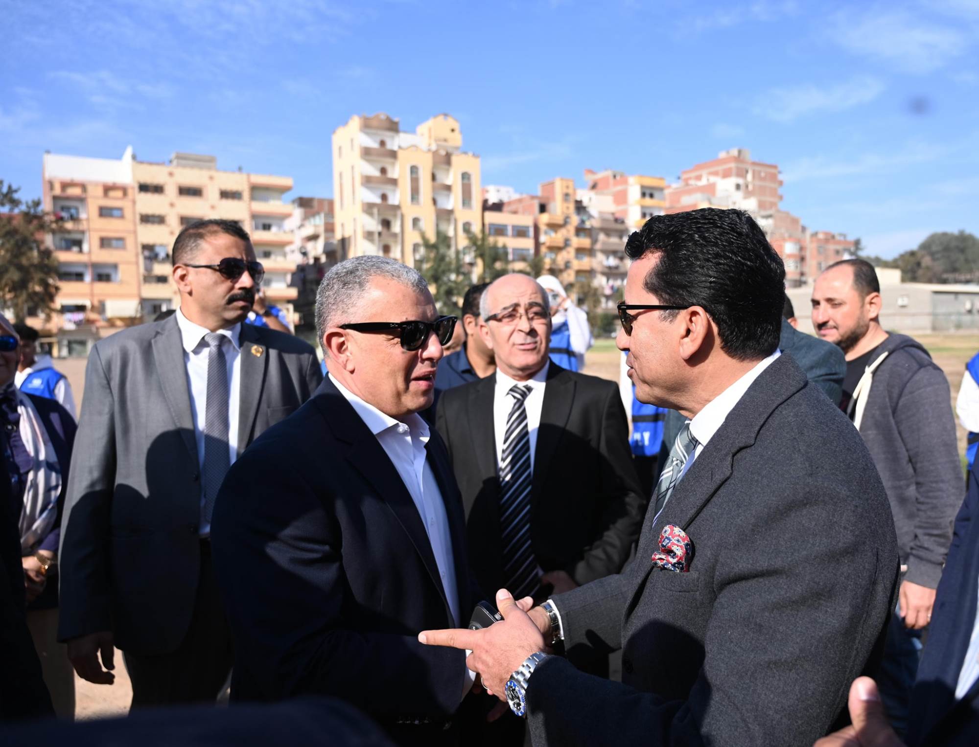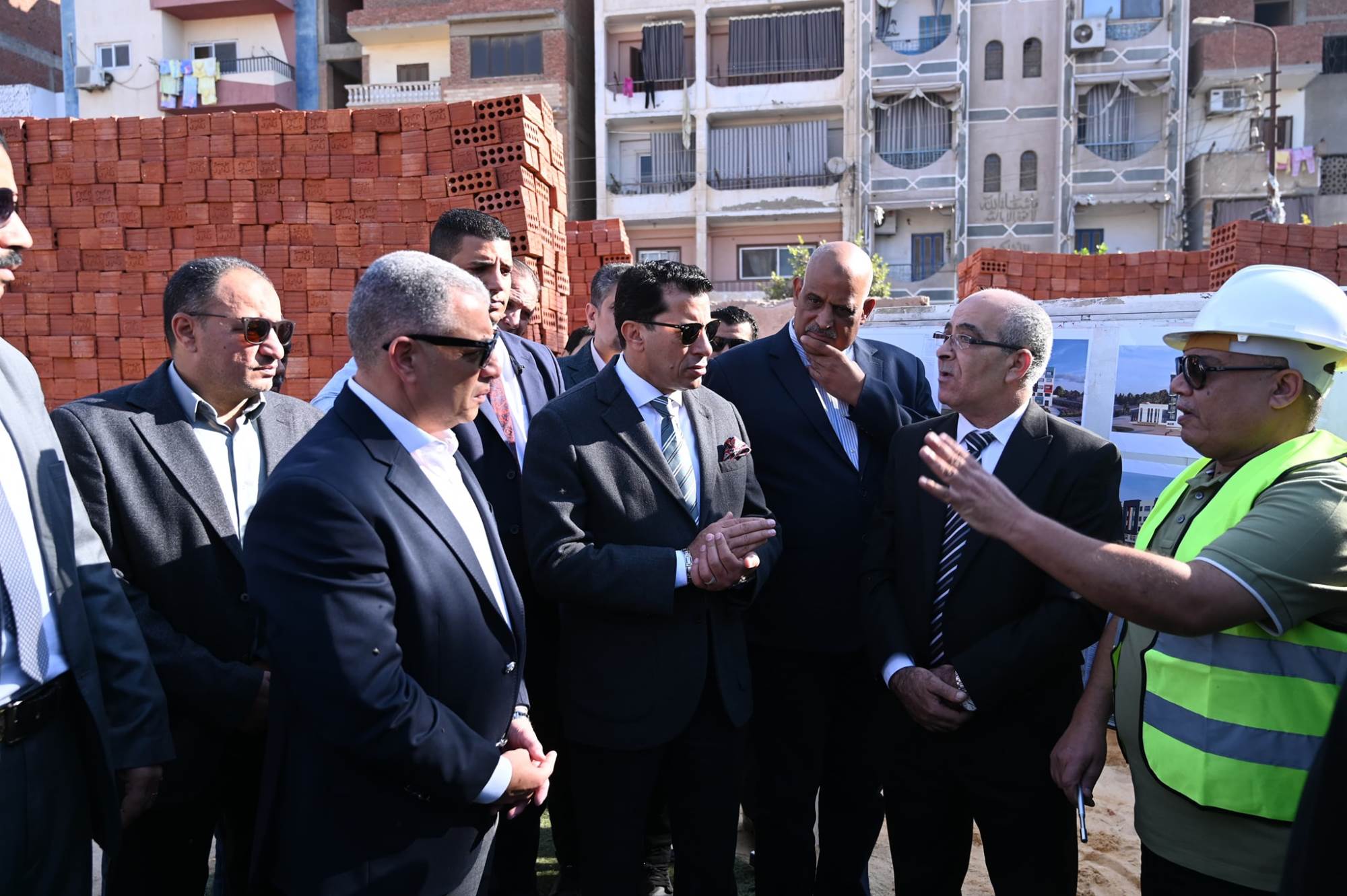 وزير الرياضة رفقة محافظ الإسماعيلية يتفقدان مشروع إنشاء المدرسة المصرية اليابانية