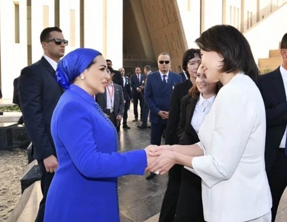 السيدة انتصار السيسى تستقبل قرينة رئيس كوريا بالمتحف الكبير