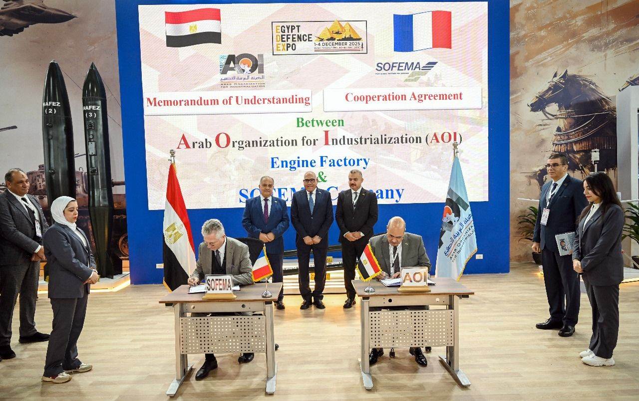 وخلال فعاليات اليوم الثالث من معرض الدفاع الدولي EDEX 2025، تم توقيع مذكرة تفاهم واتفاقية تعاون مشترك بين الهيئة العربية للتصنيع وشركة Sofema الفرنسية الرائدة، وذلك في مجال صيانة وعمرة محركات الطائرات.