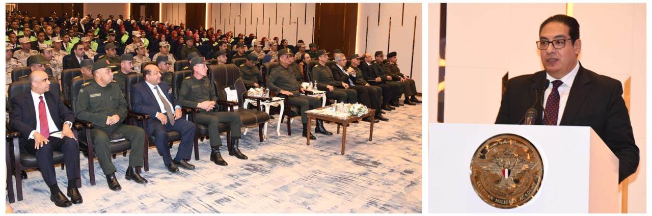 كما ألقى الفريق أشرف سالم زاهر مدير الأكاديمية العسكرية المصرية كلمة أشار خلالها إلى أن الأكاديمية تُسخِر كافة جهودها لإعداد أجيال جديدة قادرة على آداء مهامهم التى سيكلفون بها بكل تفانٍ وإخلاص بمختلف التخصصات وأختتمت مراسم الإحتفال بتبادل الدروع وتكريم المتميزين فى الدورة.