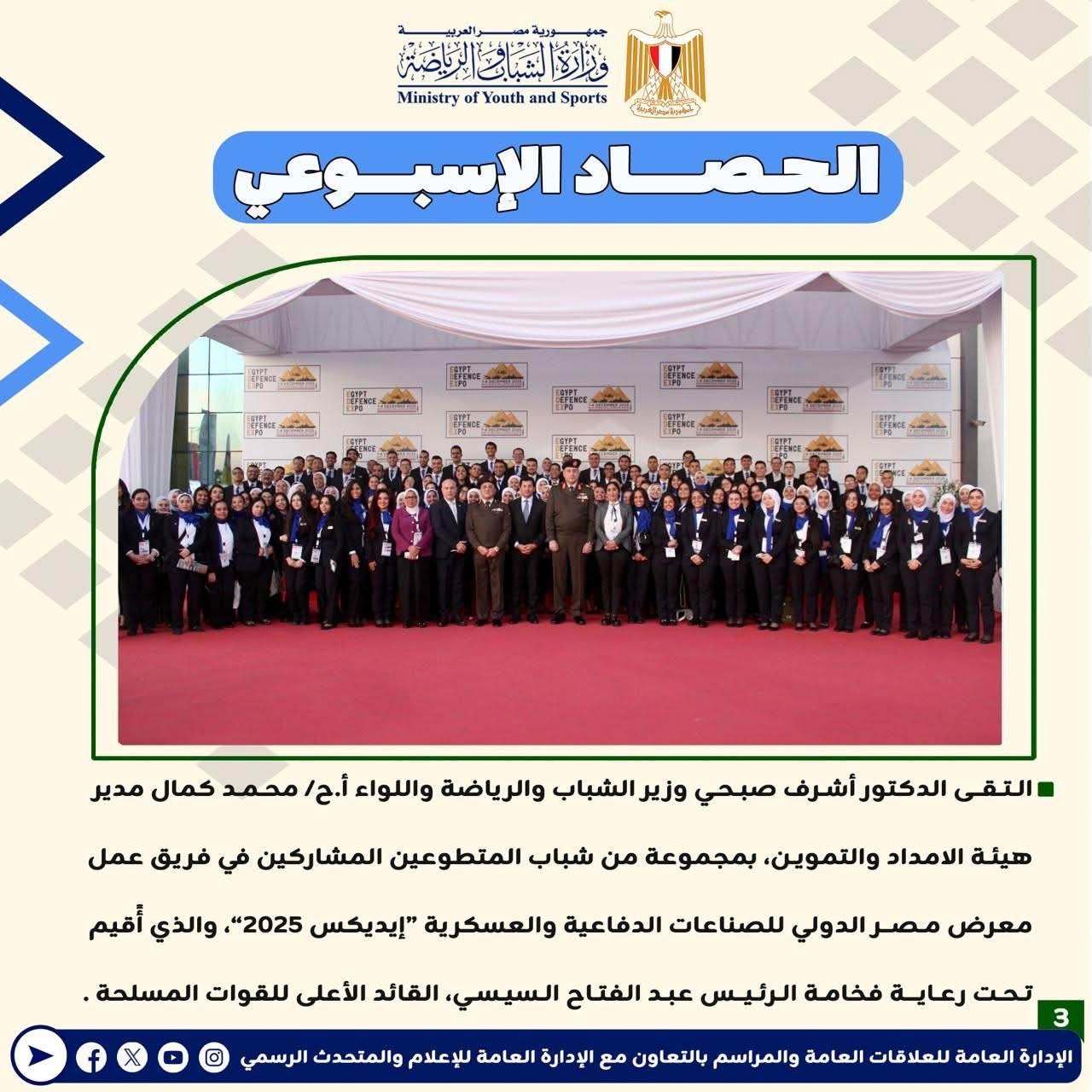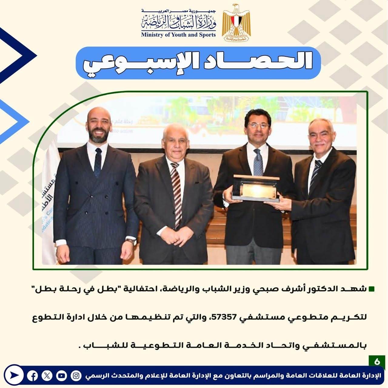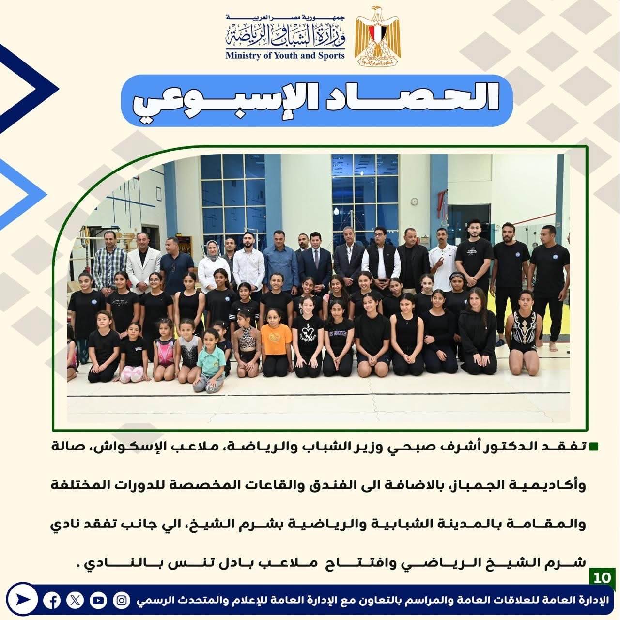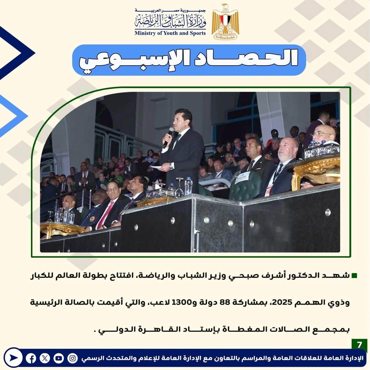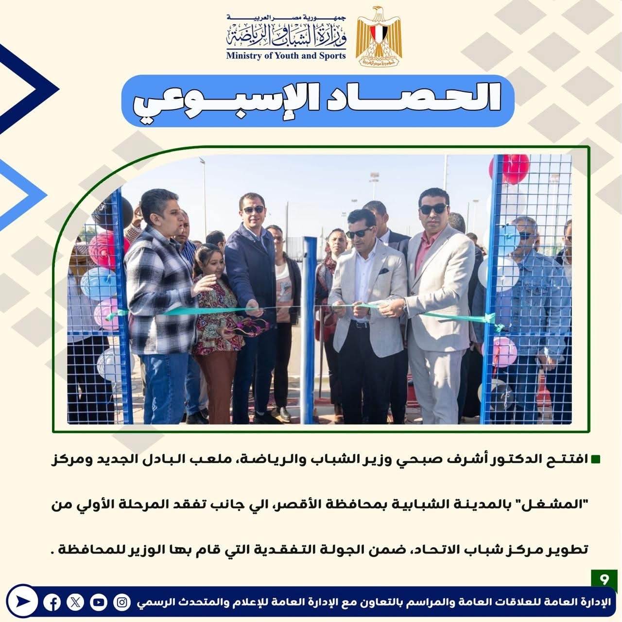 وزارة الرياضة تصدر حصادها الأسبوعي لأهم أنشطة وبرامج وفعاليات الوزارة خلال الأسبوع المنقضي