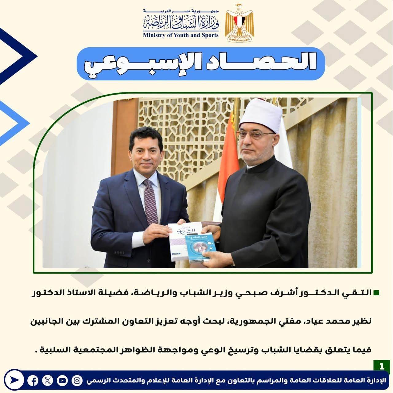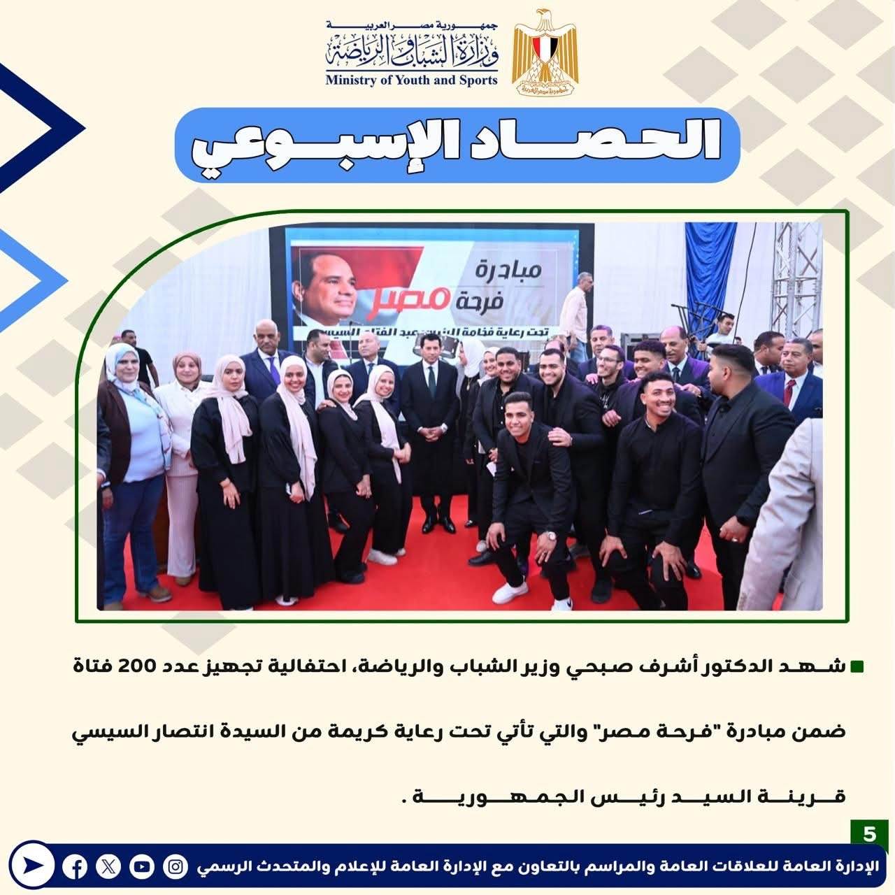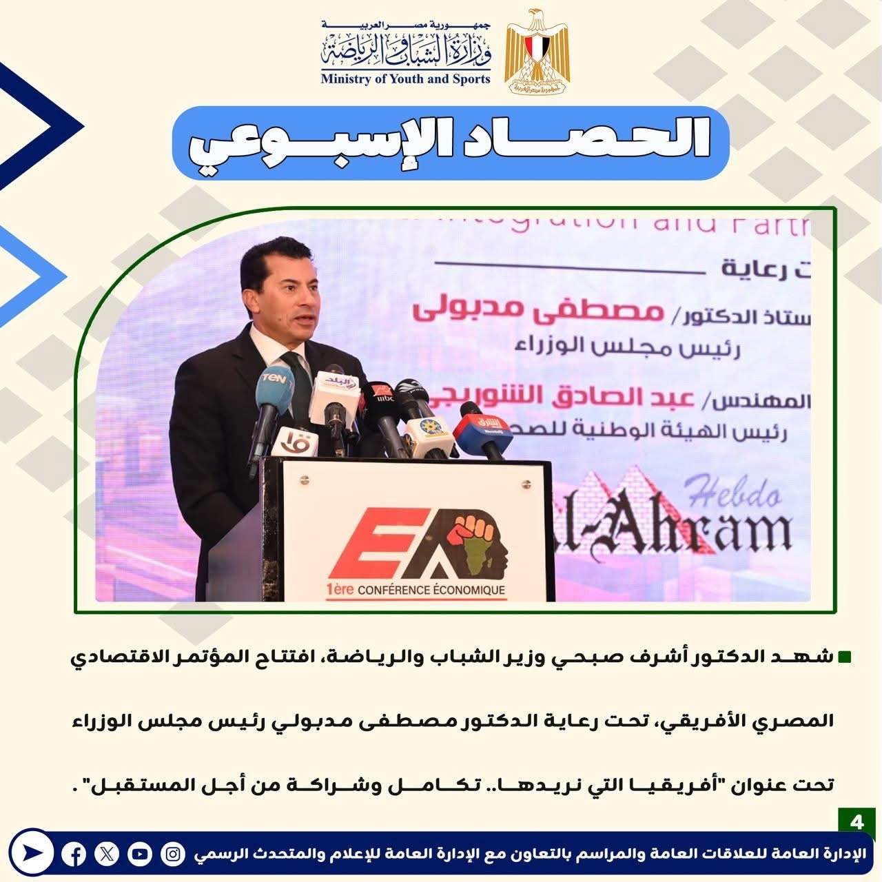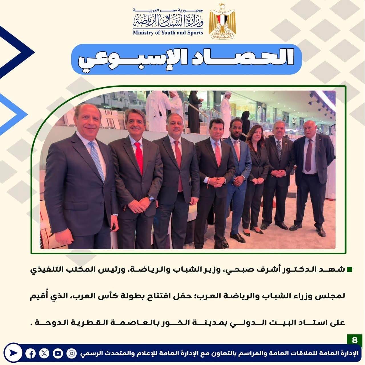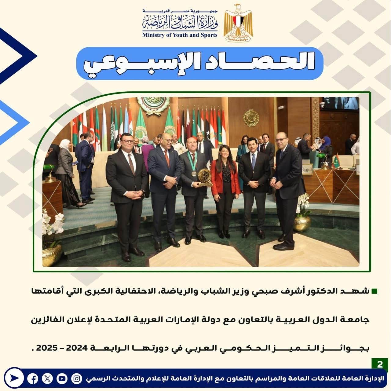 وزارة الرياضة تصدر حصادها الأسبوعي لأهم أنشطة وبرامج وفعاليات الوزارة خلال الأسبوع المنقضي