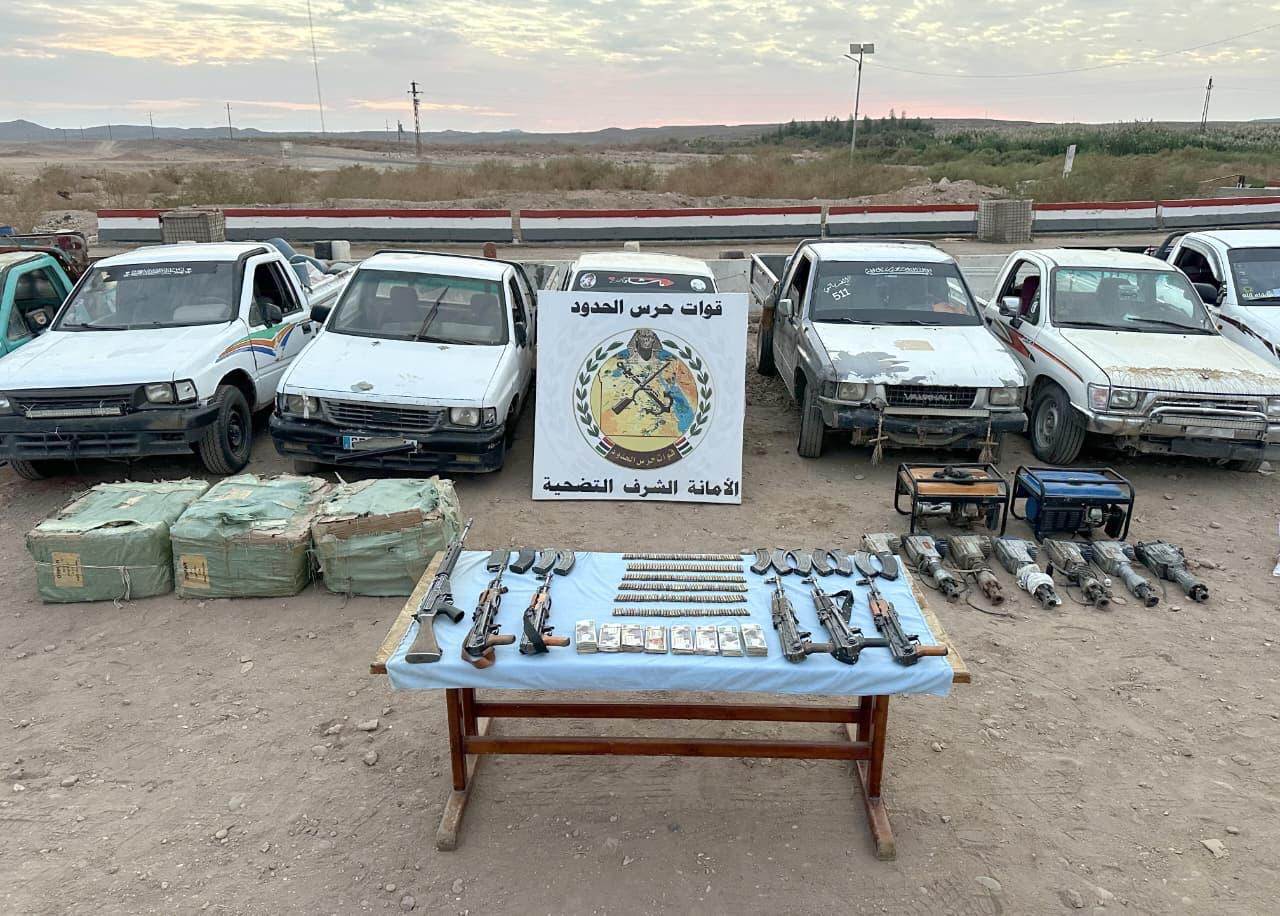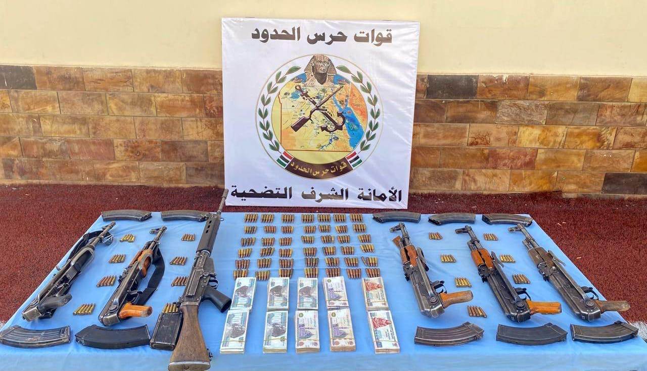 وفى توقيت متزامن نجحت قوات حرس الحدود على الإتجاه الإستراتيجى الغربى فى إحباط محاولات لتهريب كميات من الأسلحة والذخائر حيث تم ضبط عدد (11) بندقية آلية ، و(30) بندقية خرطوش ، و(1) مسدس و(33) خزنة ، و(4) تلسكوب وعدد (443) طلقة , و(12800) قرص مخدر.