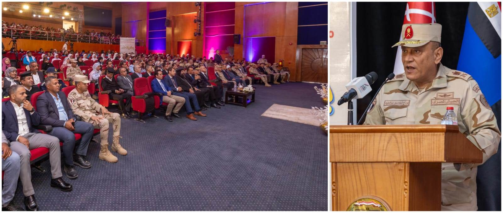 وألقى اللواء أ ح أسامة سمير عبد اللطيف قائد المنطقة الجنوبية العسكرية كلمة أكد خلالها أن القيادة العامة للقوات المسلحة لا تدخر جهداً فى التعاون مع مختلف أجهزة الدولة ومؤسسات المجتمع المدنى لتوفير الحياة الكريمة لأبناء شعب مصر العظيم إيماناً منها بأن قوة الوطن الحقيقة تنبع من تماسك أبنائه .