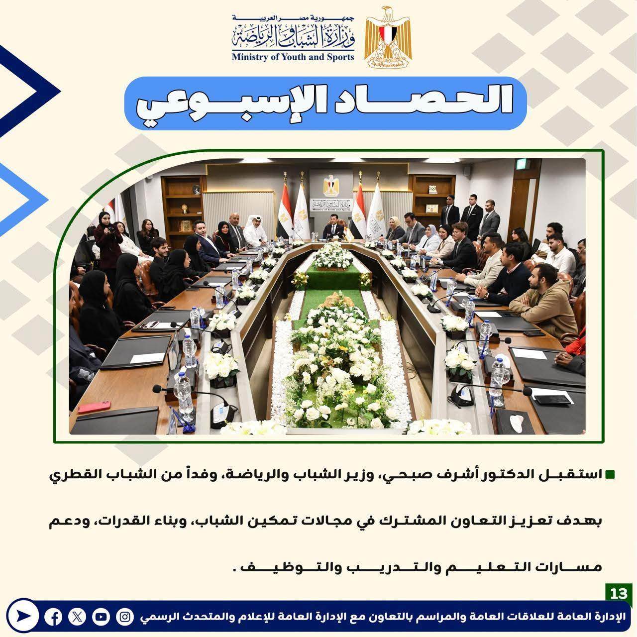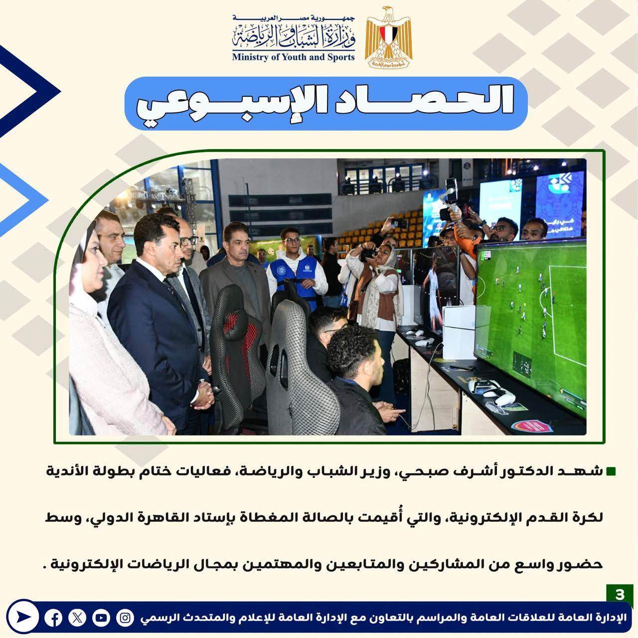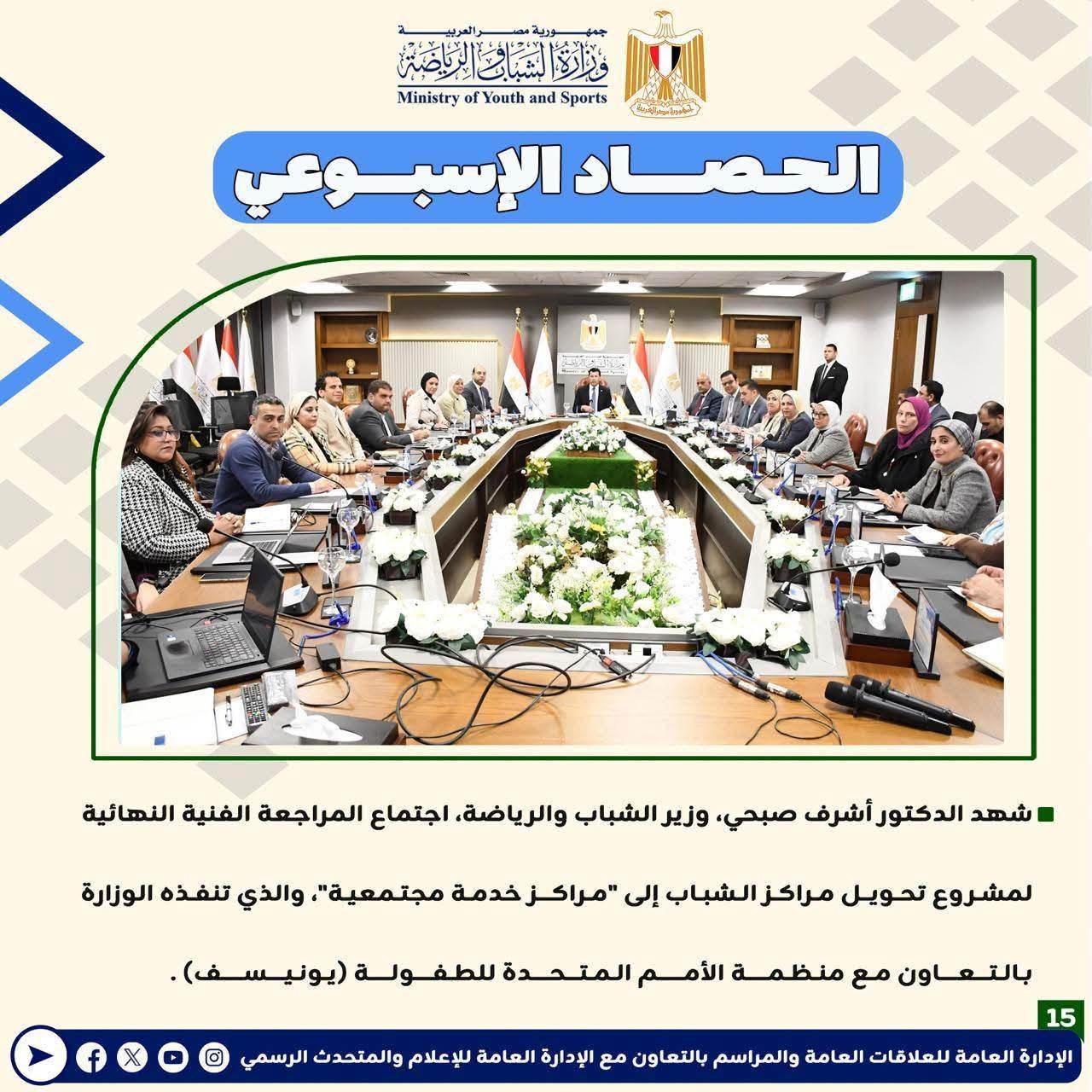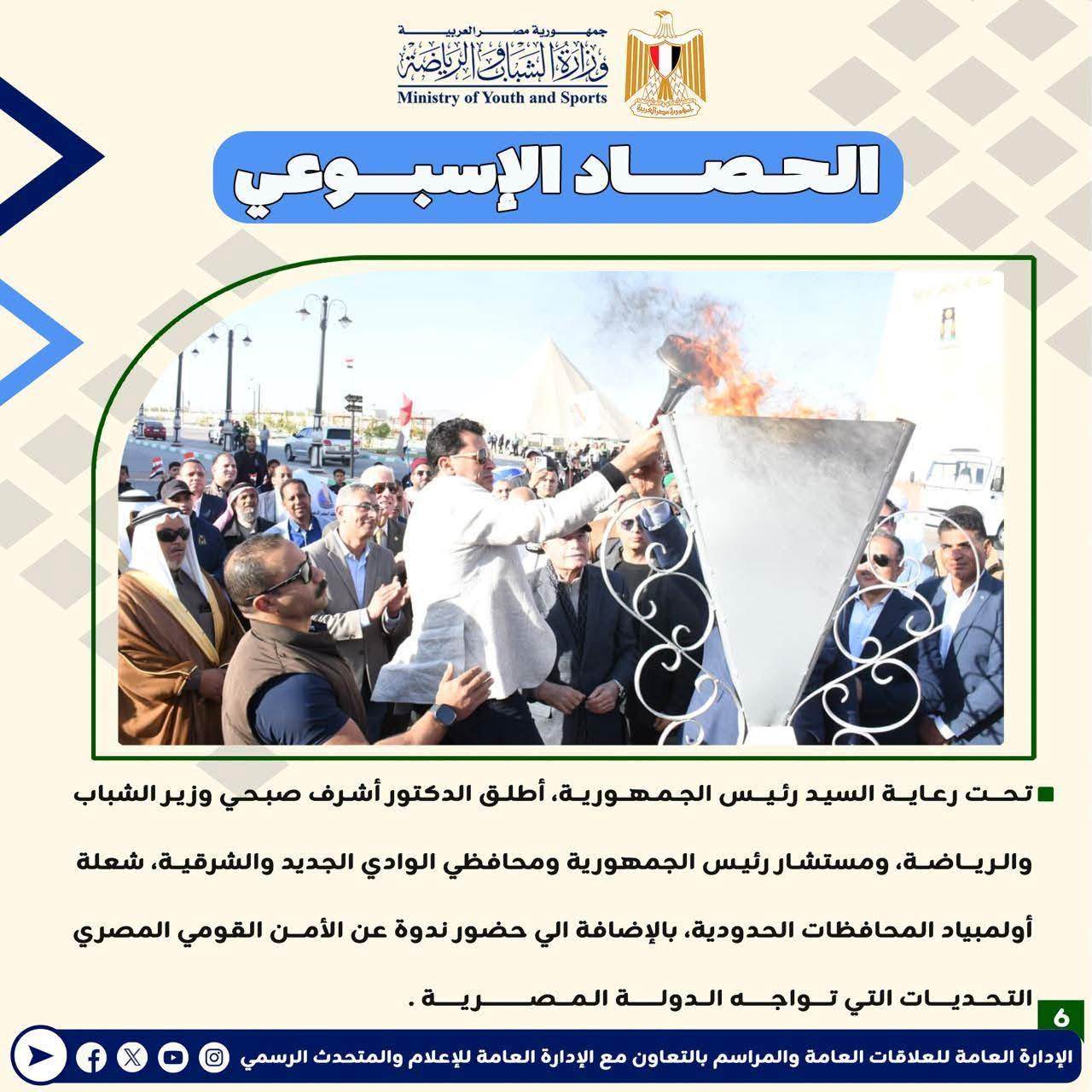 وزارة الشباب والرياضة تصدر حصادها الأسبوعي لأهم أنشطة وبرامج وفعاليات الوزارة خلال الأسبوع المنقضي