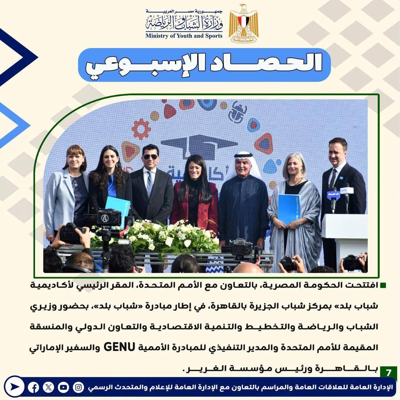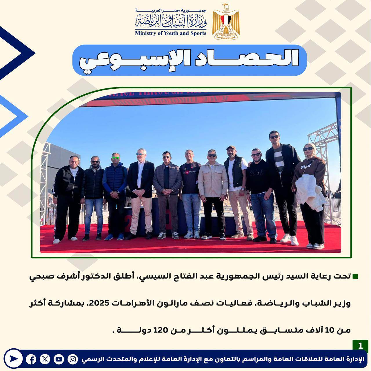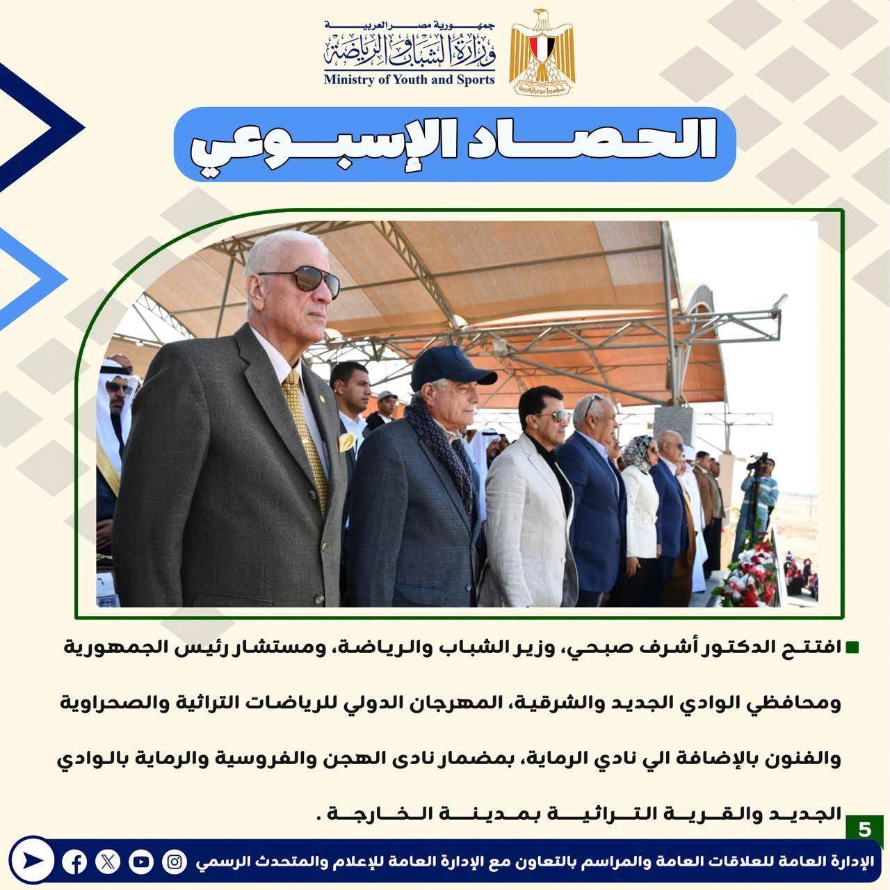وزارة الشباب والرياضة تصدر حصادها الأسبوعي لأهم أنشطة وبرامج وفعاليات الوزارة خلال الأسبوع المنقضي