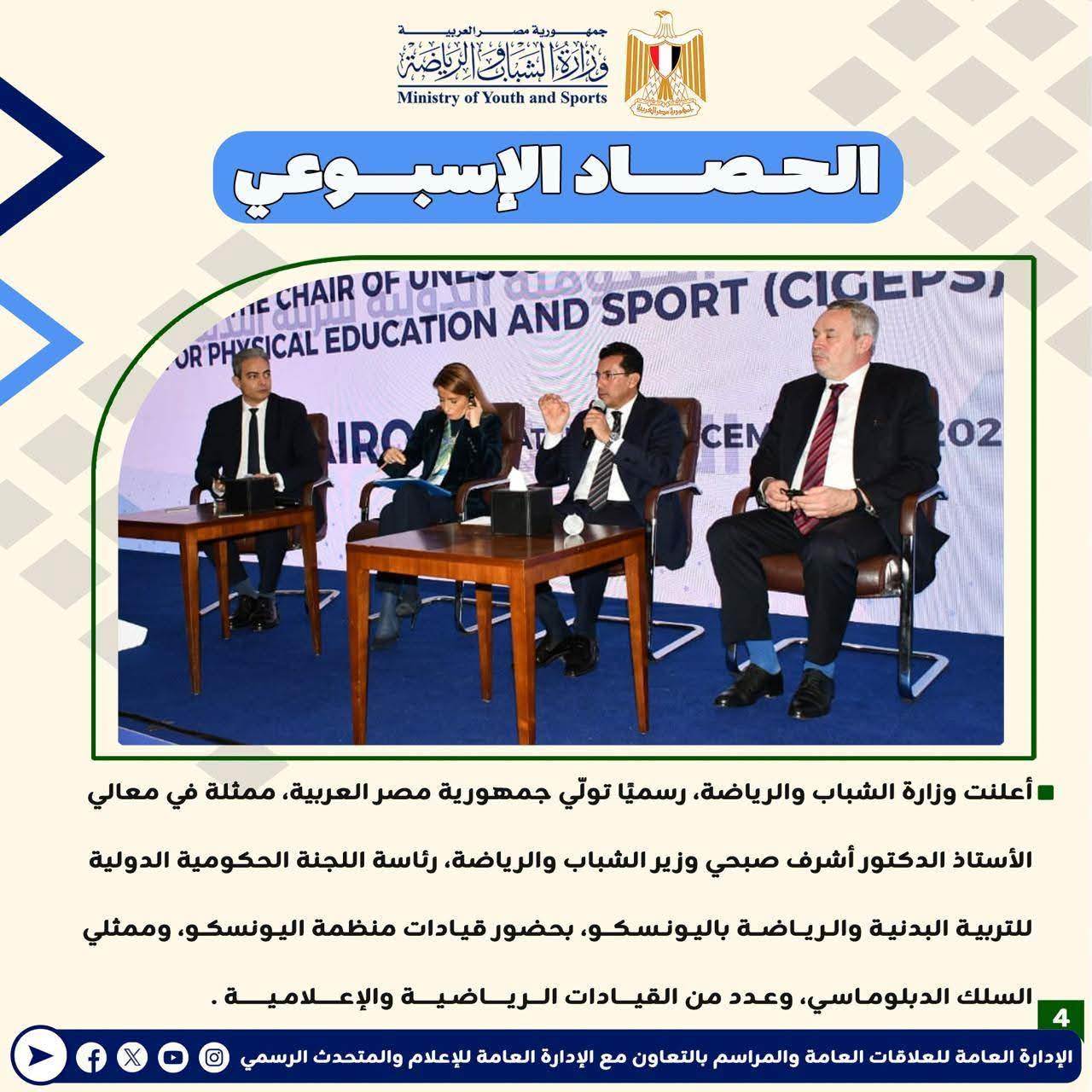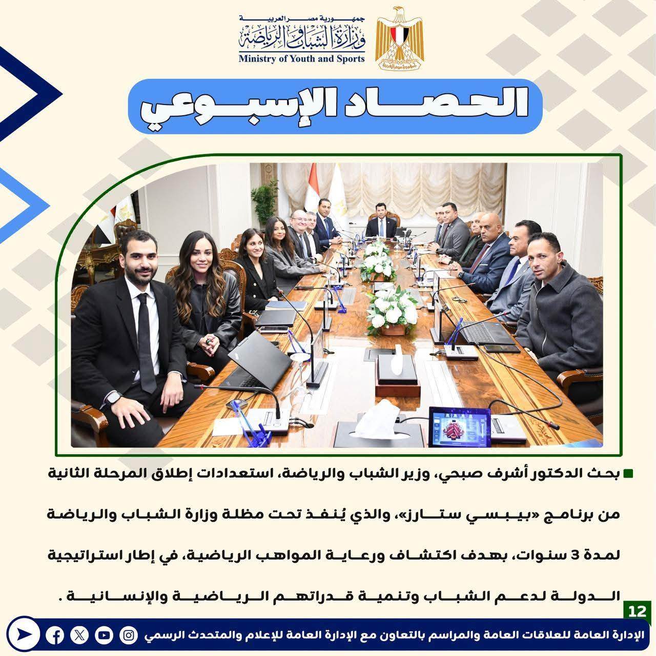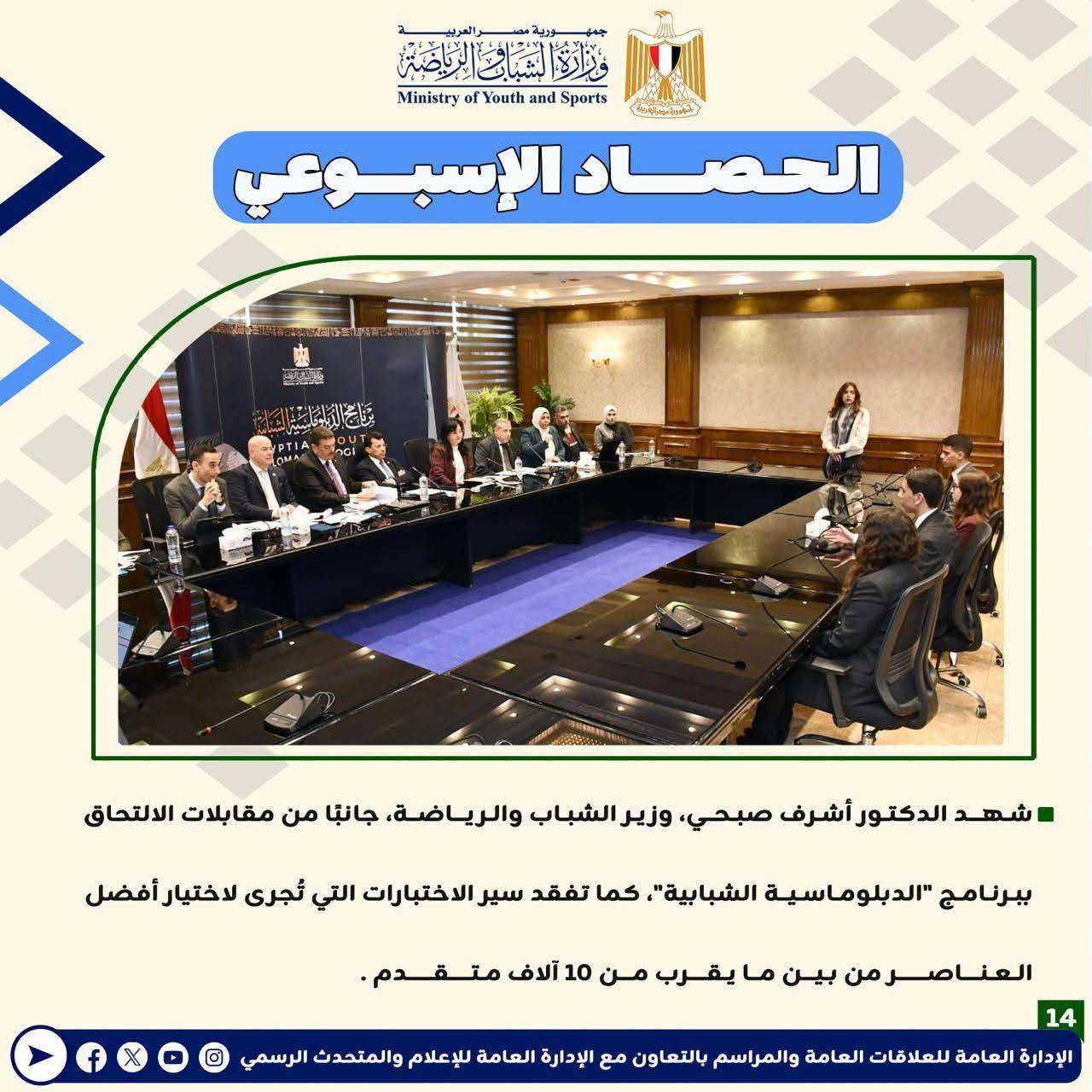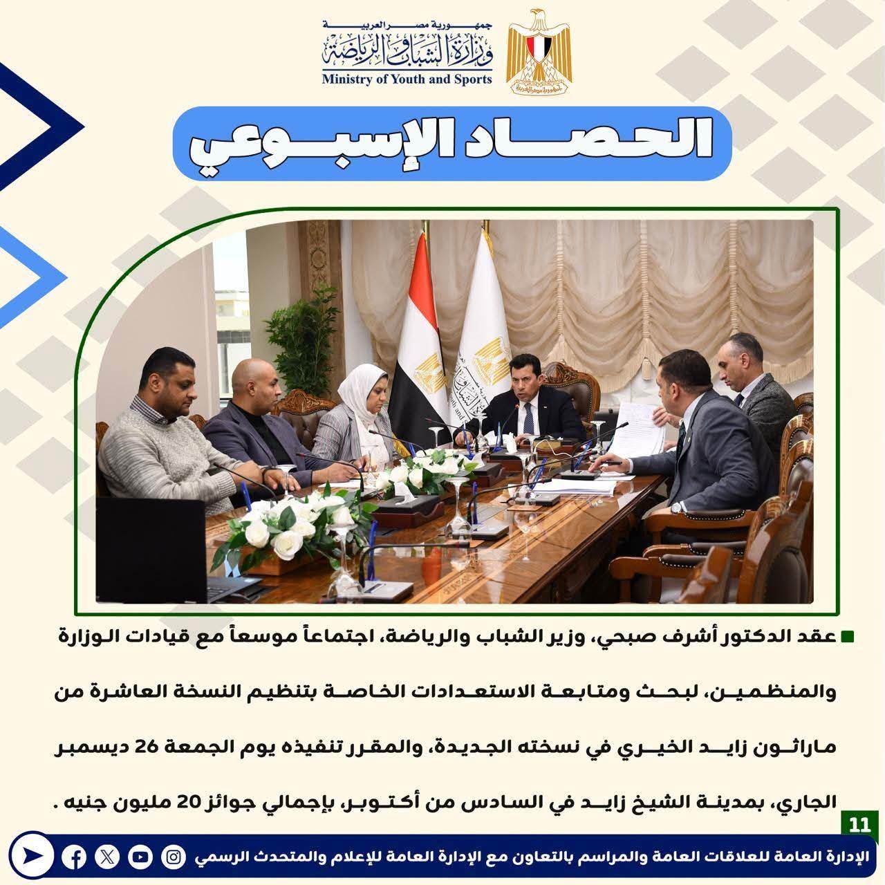 وزارة الشباب والرياضة تصدر حصادها الأسبوعي لأهم أنشطة وبرامج وفعاليات الوزارة خلال الأسبوع المنقضي