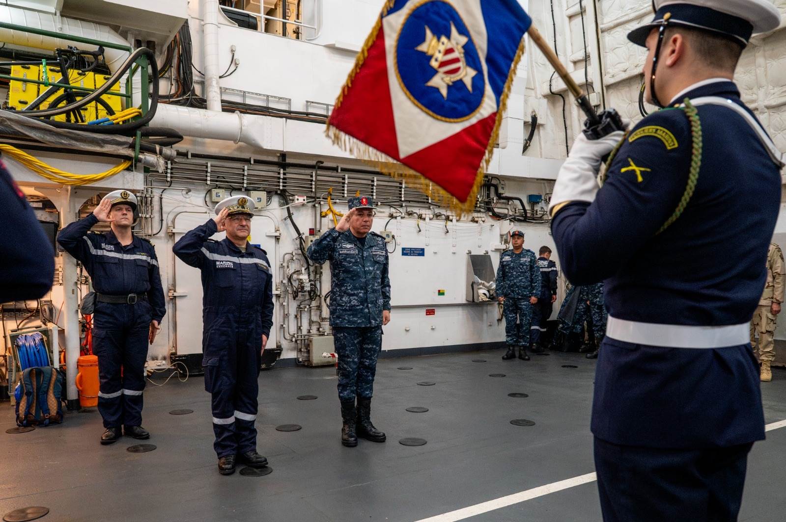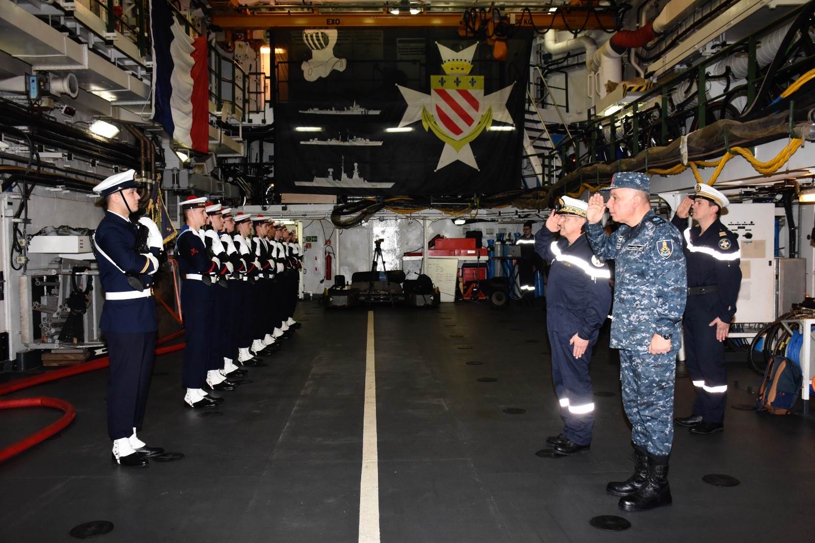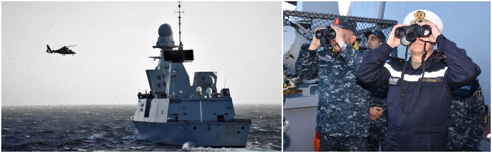 حضر المرحلة الرئيسية للتدريب اللواء أ ح محمود عادل فوزى قائد القوات البحرية والفريق كريستوف لوكا قائد الأسطول الفرنسى بالبحر المتوسط والبحر الأسود وعدد من قادة القوات البحرية المصرية والفرنسية.