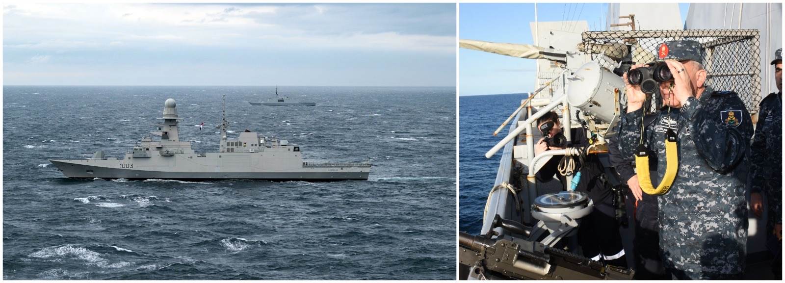 كما تم التدريب على مجابهة التهديدات غير النمطية , وتنفيذ بيانات عملية لتبادل الطائرات على أسطح القطع البحرية , والتزود بالوقود فى البحر , فضلاً عن التدريب على أعمال حق الزيارة والتفتيش للسفن المشتبه بها , وتنفيذ رماية مدفعية بالذخيرة الحية لتدمير الأهداف السطحية المعادية.