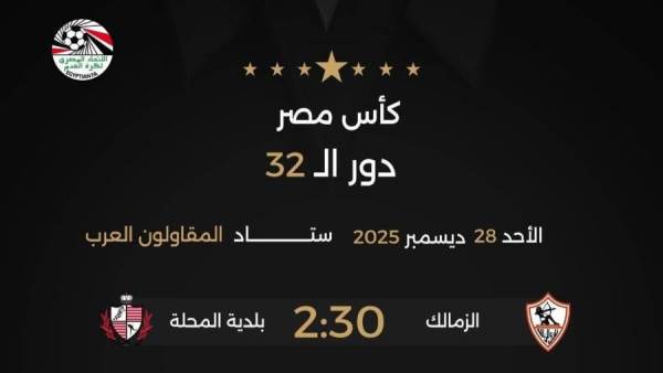 أعلنت لجنة الحكام الرئيسية بالاتحاد المصري لكرة القدم، طاقم تحكيم مباراة الزمالك وبلدية المحلة، ضمن منافسات دور 32 بمسابقة كأس مصر.