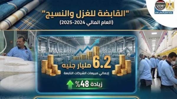 بالإنفوجراف.. كشفت المؤشرات المالية للشركة القابضة للقطن والغزل والنسيج والملابس الجاهزة، التابعة لوزارة قطاع الأعمال العام، عن تحقيق أداء مالي قوي ونمو ملحوظ في المبيعات والصادرات خلال العام المالي 2024–2025، بالتزامن مع تشغيل المرحلة الأولى من المشروع القومي لتطوير صناعة الغزل والنسيج في أواخر عام 2024.