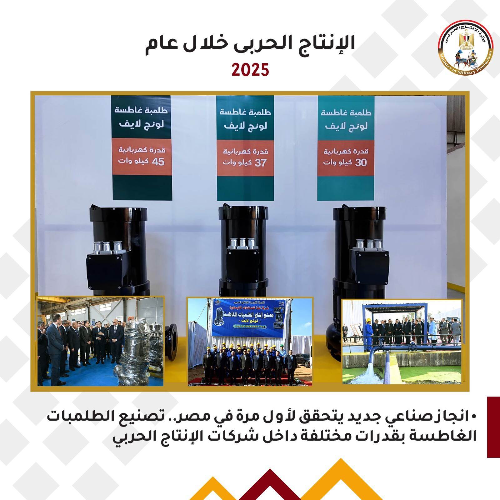 - • انجاز صناعي جديد يتحقق لأول مرة في مصر.. تصنيع الطلمبات الغاطسة بقدرات مختلفة داخل شركات الإنتاج الحربي