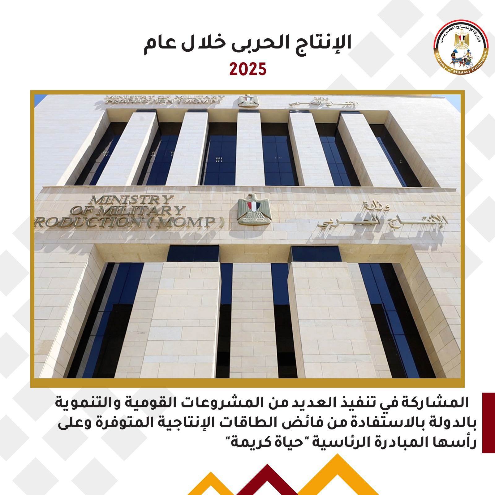 نشرت وزارة الإنتاج الحربي الإنجازات العسكرية والتنموية للوزارة خلال عام 2025، وجاءت الإنجازات كالتالي: