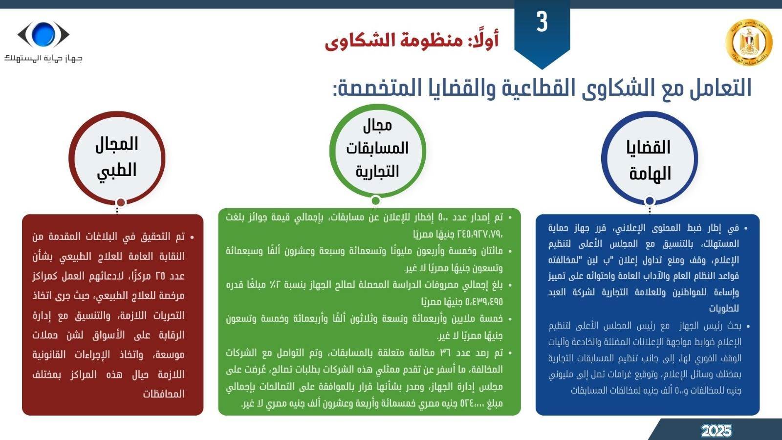 عام من المواجهة والرقابة وبناء الثقة نحو مستهلك واعٍ وسوق منضبط.. جهاز حماية المستهلك يُعلن الحصاد السنوي لعام 2025