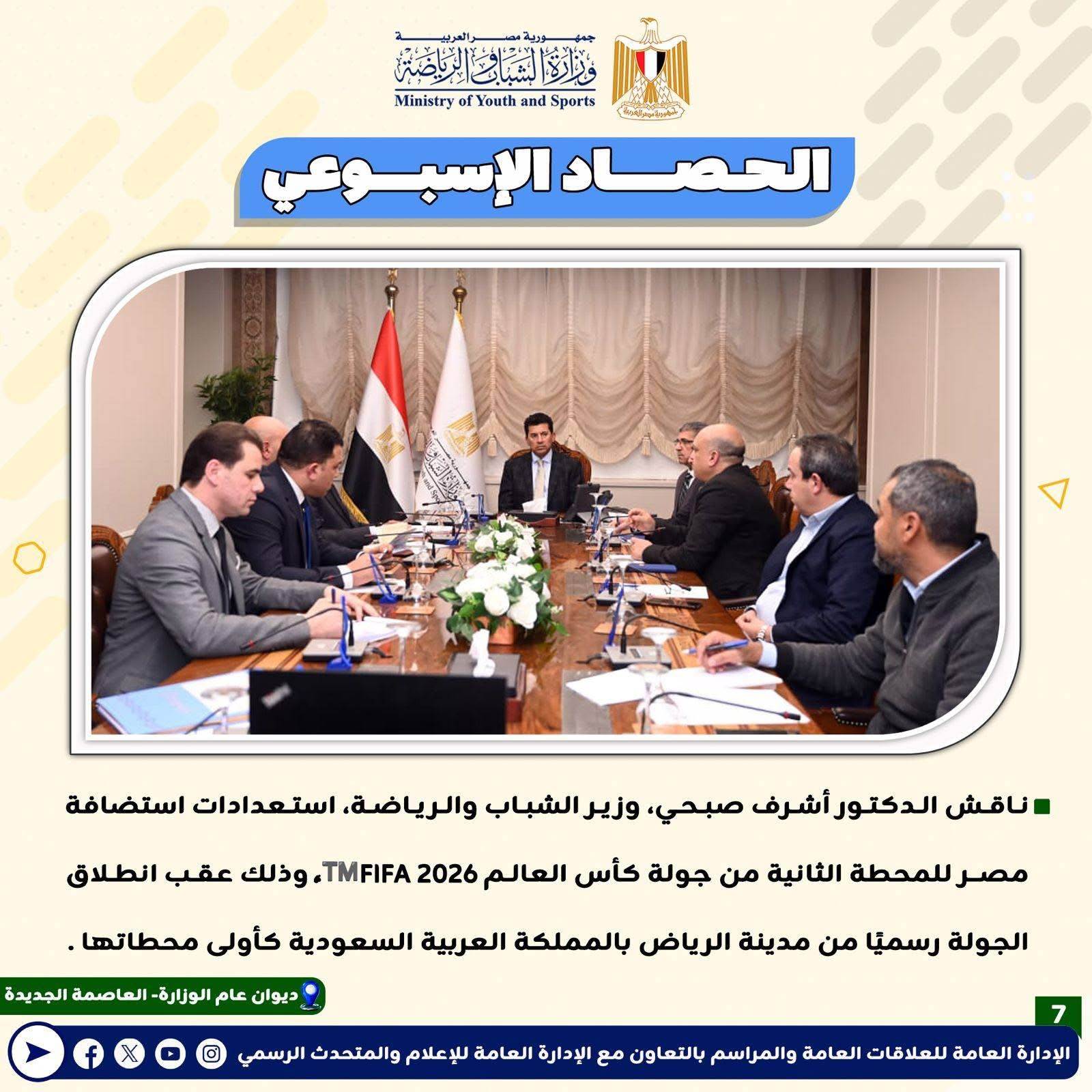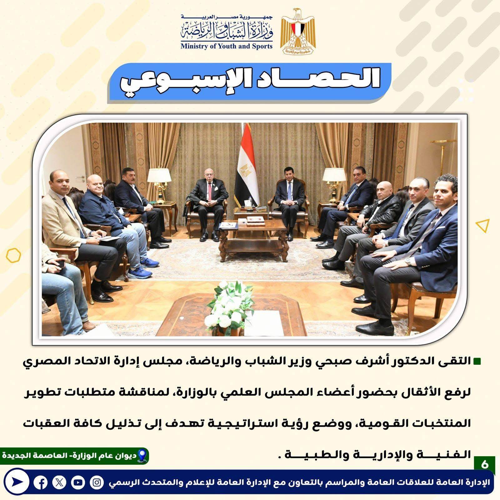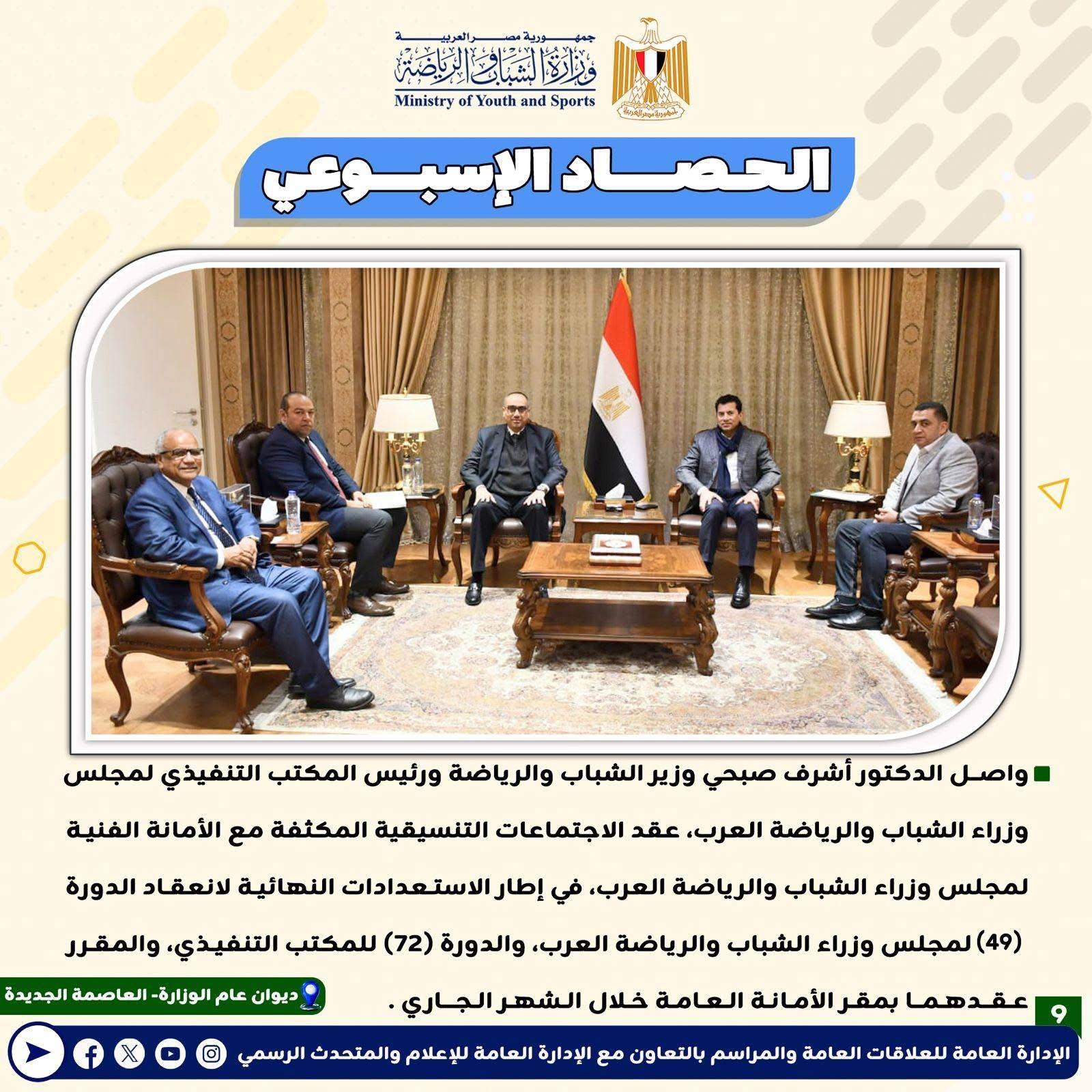 بـالإنفوجــراف: وزارة الشباب والرياضة تصدر حصادها الأسبوعي لأهم أنشطة وبرامج وفعاليات الوزارة