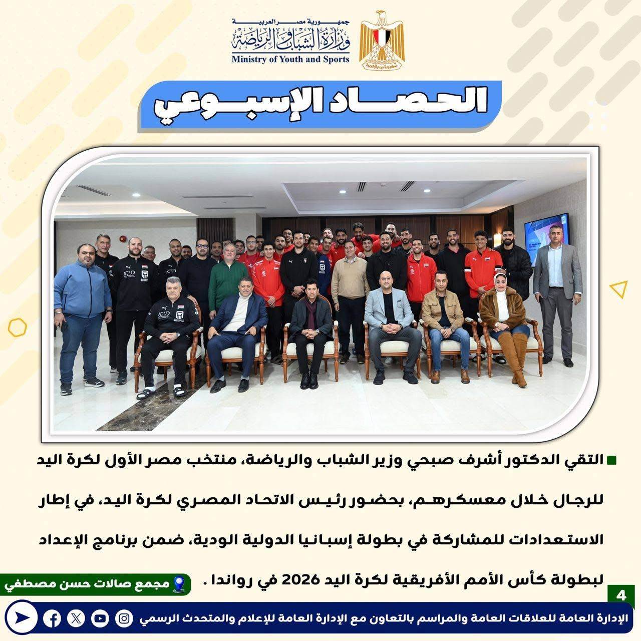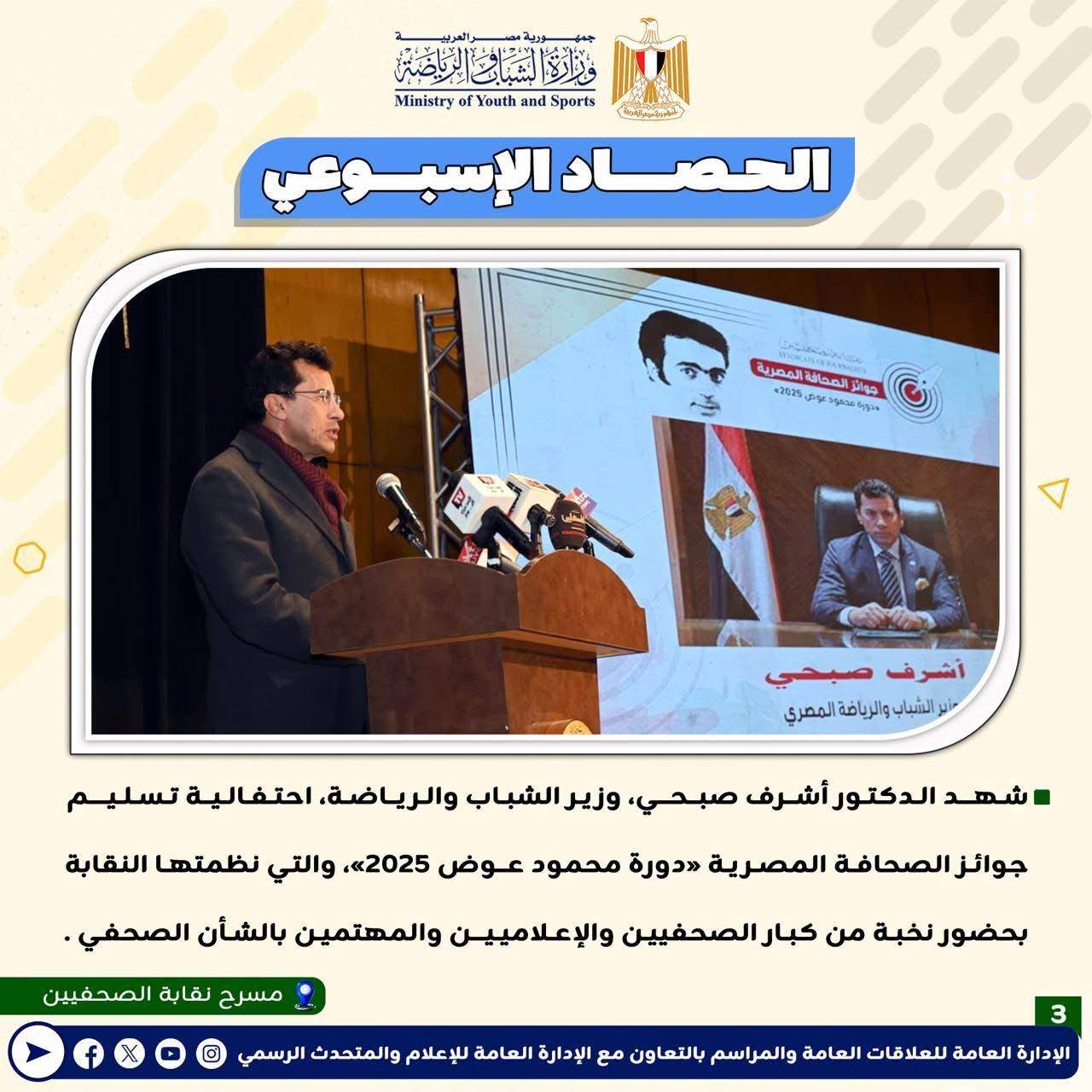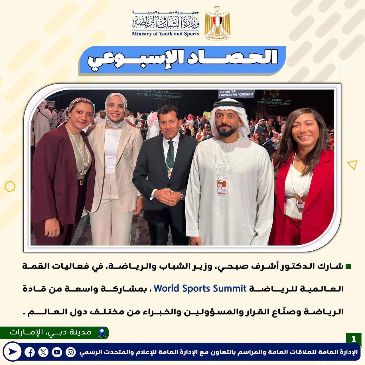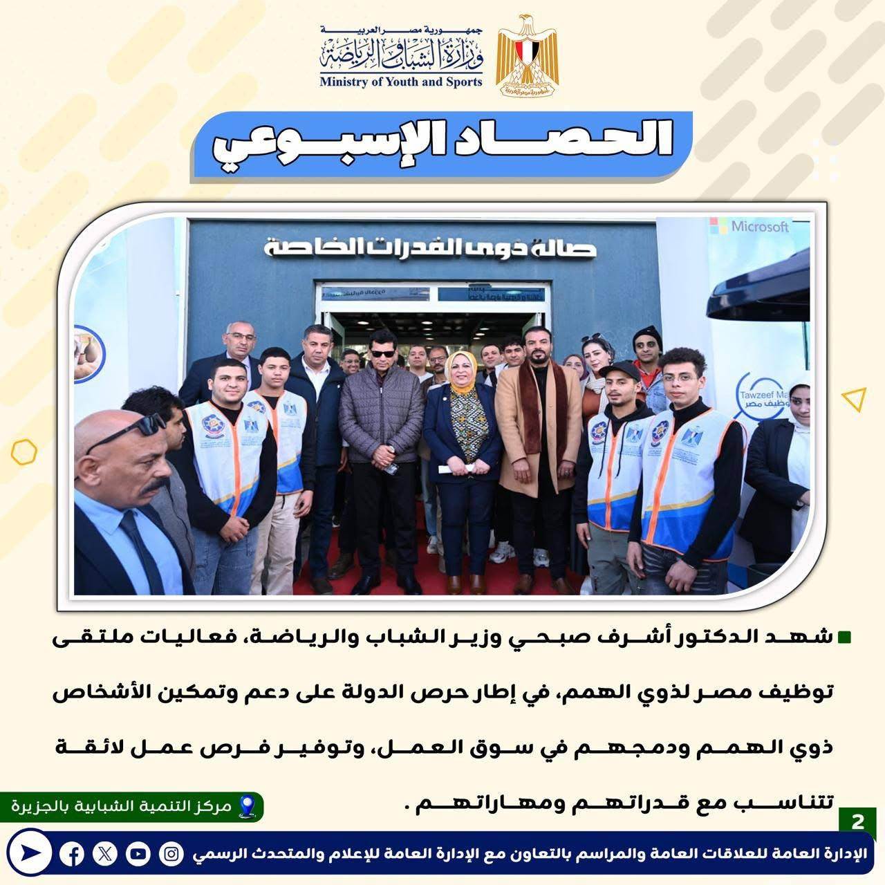 بـالإنفوجــراف: وزارة الشباب والرياضة تصدر حصادها الأسبوعي لأهم أنشطة وبرامج وفعاليات الوزارة