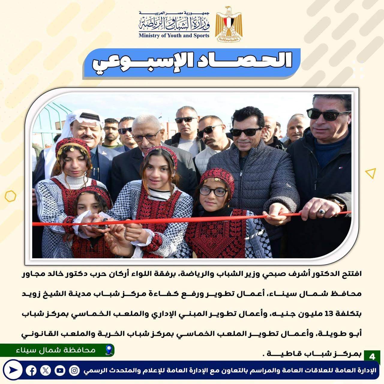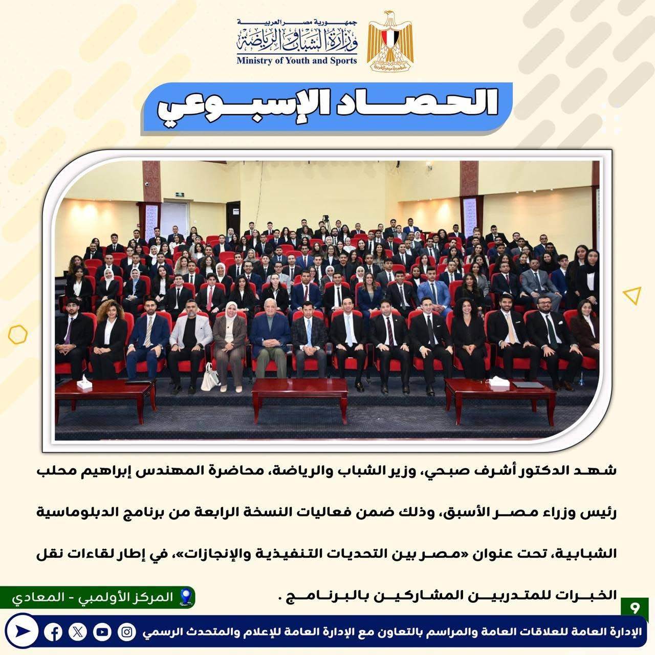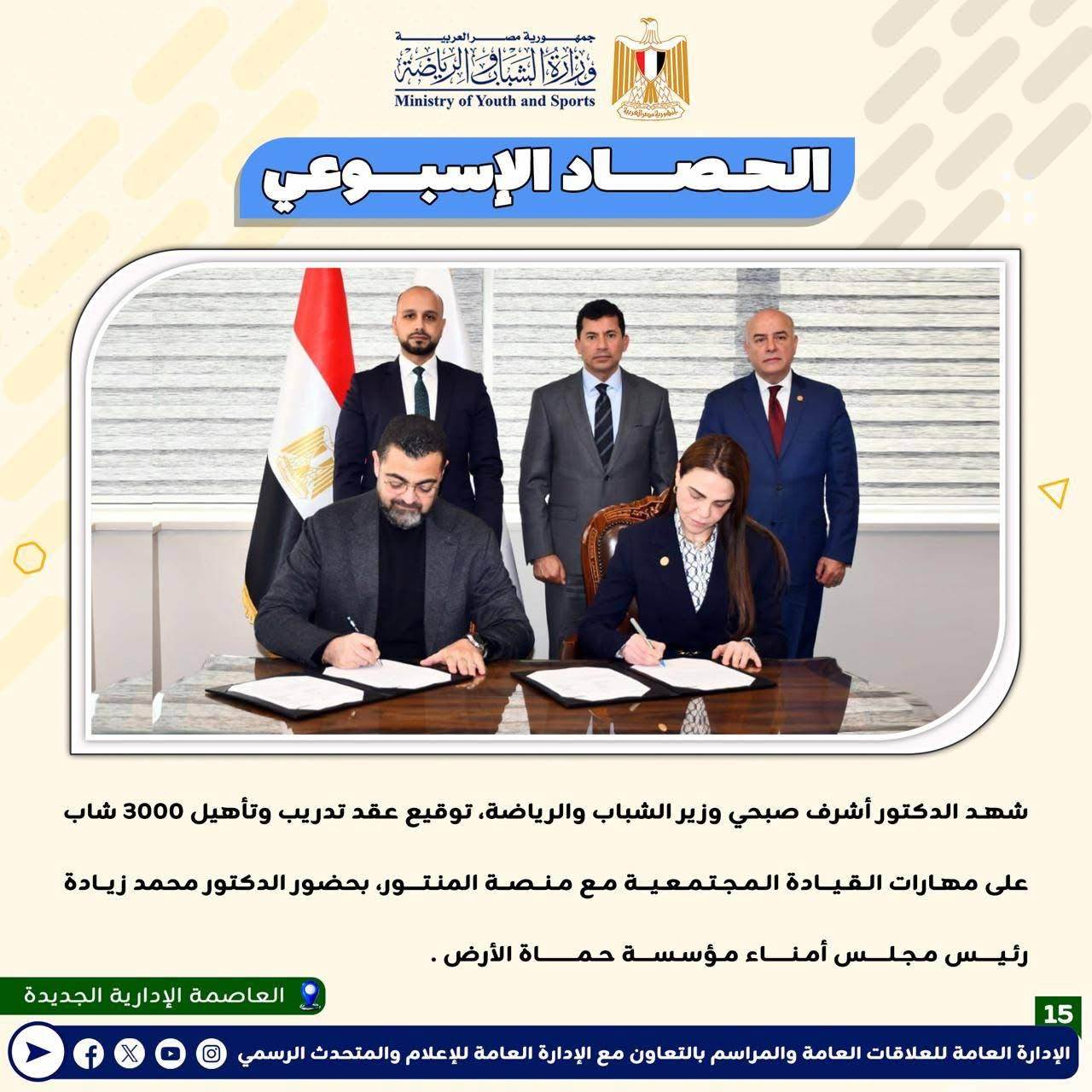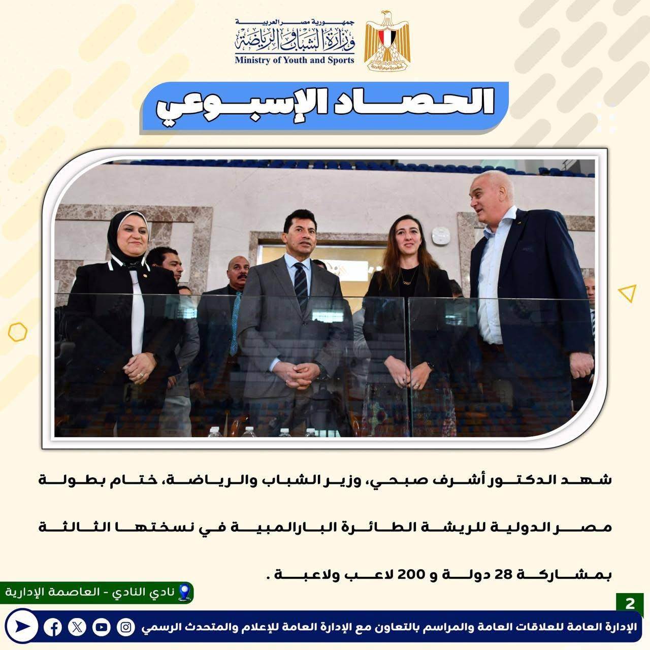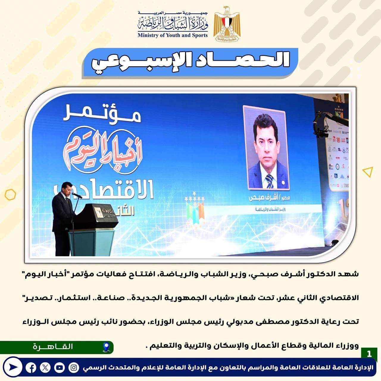 بالانفوجراف: وزارة الشباب والرياضة تصدر حصادها الأسبوعي لأهم أنشطة وبرامج وفعاليات الوزارة خلال الأسبوع المنقضي