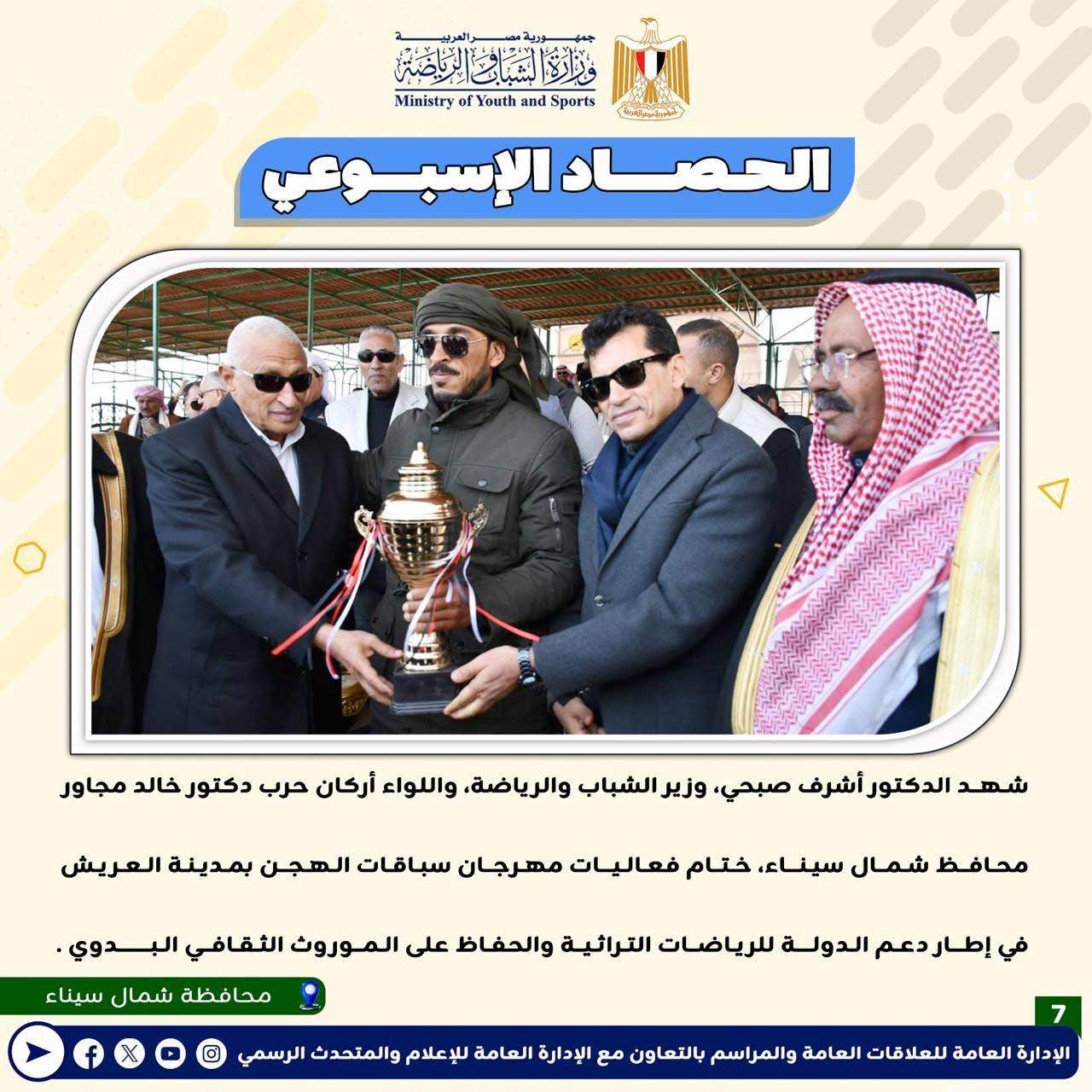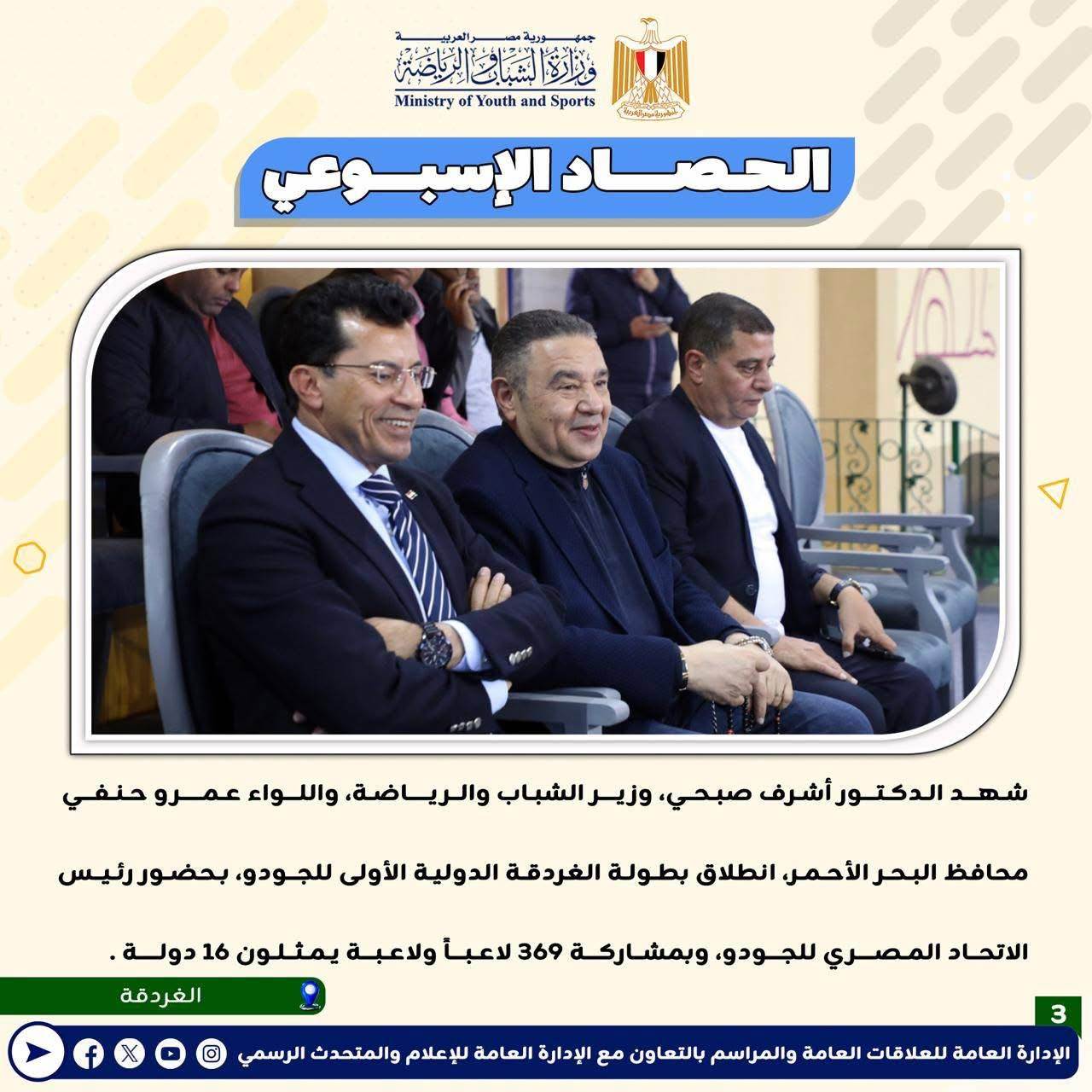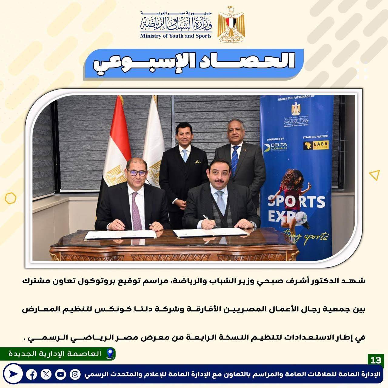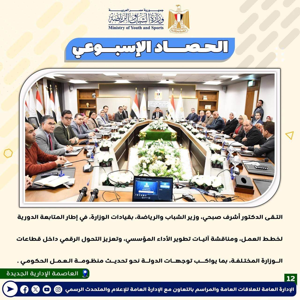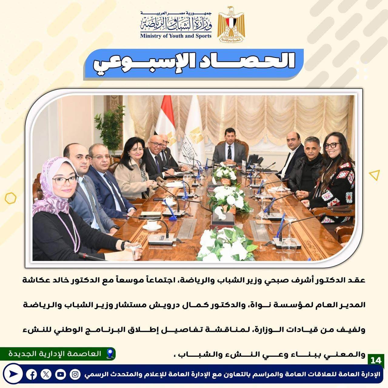 بالانفوجراف: وزارة الشباب والرياضة تصدر حصادها الأسبوعي لأهم أنشطة وبرامج وفعاليات الوزارة خلال الأسبوع المنقضي