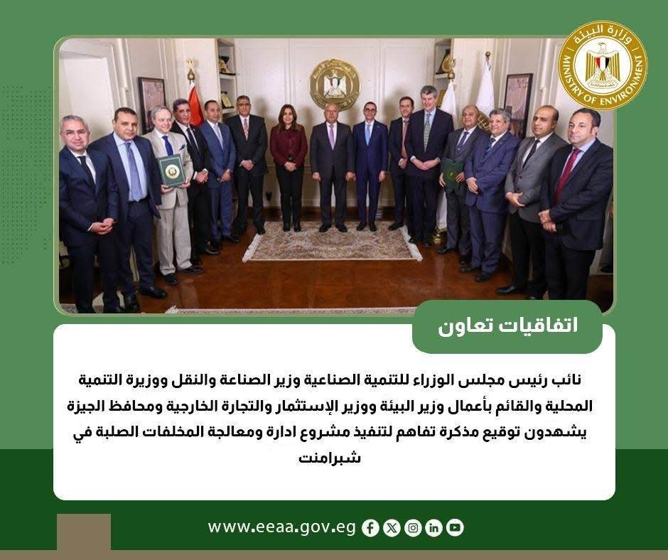 شهد الفريق مهندس كامل الوزير نائب رئيس مجلس الوزراء للتنمية الصناعية ووزير الصناعة والنقل والدكتورة منال عوض وزيرة التنمية المحلية والقائم بأعمال وزير البيئة ، والمهندس حسن الخطيب وزير الاستثمار والتجارة الخارجية ، والمهندس عادل النجار محافظ الجيزة توقيع مذكرة تعاون بين الحكومة المصرية ممثلة في محافظة الجيزة ، وشركة بولار هايدرو لتنفيذ مشروع ومعالجة المخلفات الصلبة في شبرامنت ، ويأتي ذلك في إطار تعزيز الشراكة مع القطاع الخاص في تنفيذ المنظومة المتكاملة لإدارة المخلفات وبتكلفة ٤,٢مليار دولار أمريكي .