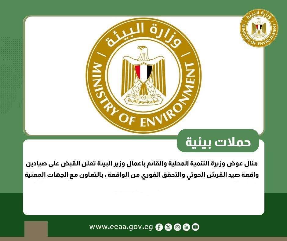 د.منال عوض وزيرة التنمية المحلية والقائم بأعمال وزير البيئة تعلن القبض على صيادين واقعة صيد القرش الحوتي والتحقق الفوري من الواقعة ، بالتعاون مع الجهات المعنية ، وإتخاذ كافة الإجراءات القانونية حيال ذلك ، ويأتي ذلك في إطار رصد وزارة البيئة لما تم تداوله على مواقع التواصل الاجتماعي من فيديو يتناول صيد قرش الحوت النادر والتعامل معه بطريقة وحشية .