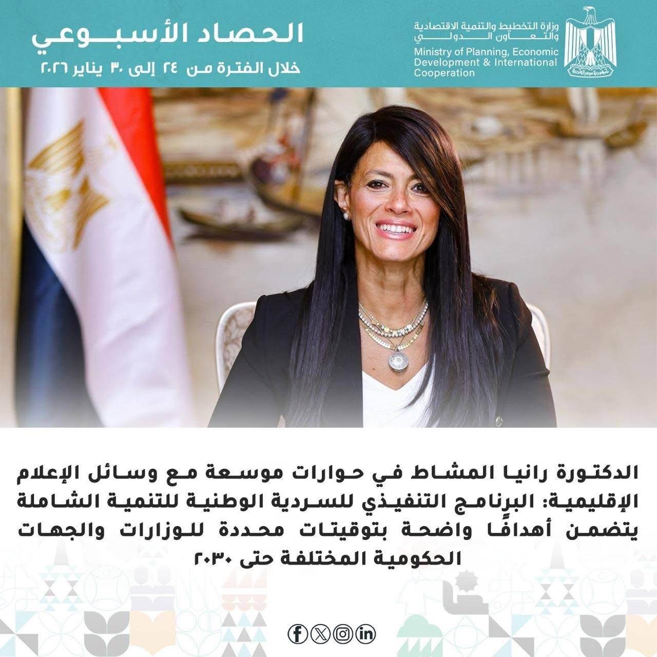 أصدرت وزارة التخطيط والتنمية الاقتصادية والتعاون الدولي، تقرير الحصاد الأسبوعي عن الأسبوع المنقضي الذي شهد زخما من الفعاليات واللقاءات.