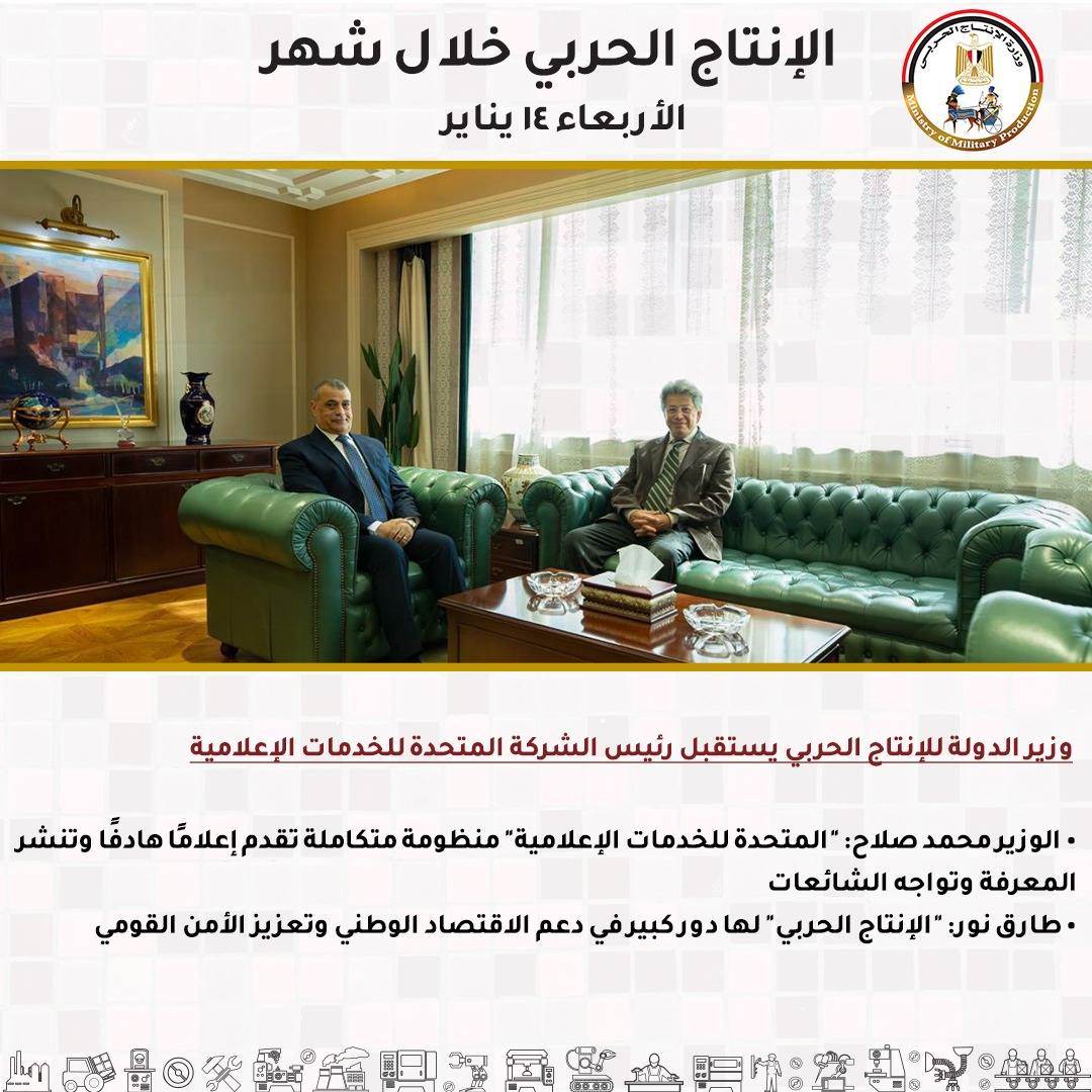 - -وزير الدولة للإنتاج الحربي يستقبل رئيس الشركة المتحدة للخدمات الإعلامية.
