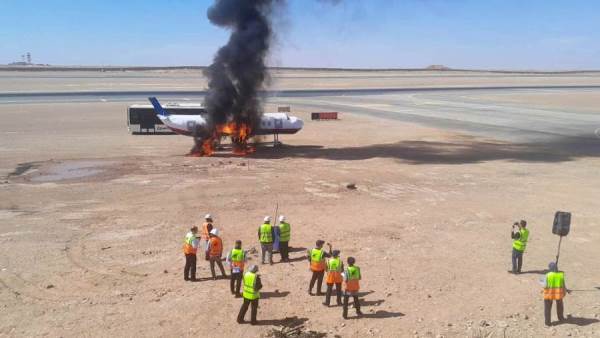 بالصور محافظ أسوان يكلف نائبه بالمشاركة فى تجربة الطوارئ للسيطرة على حادث طائرة بمطار أسوان