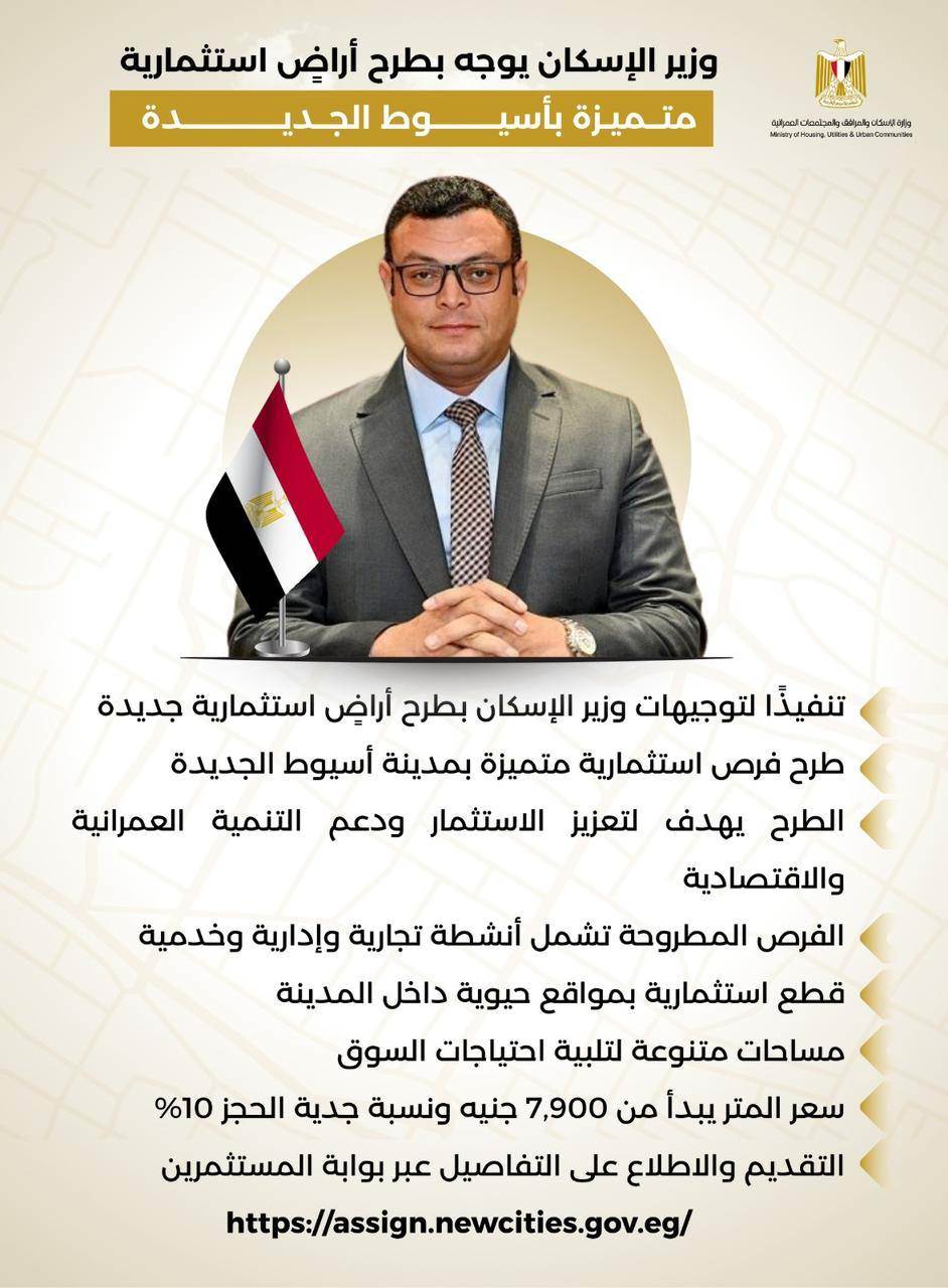 بالإنفوجراف: طرح أراضٍ استثمارية جديدة بمواقع متميزة بمدينة أسيوط الجديدة