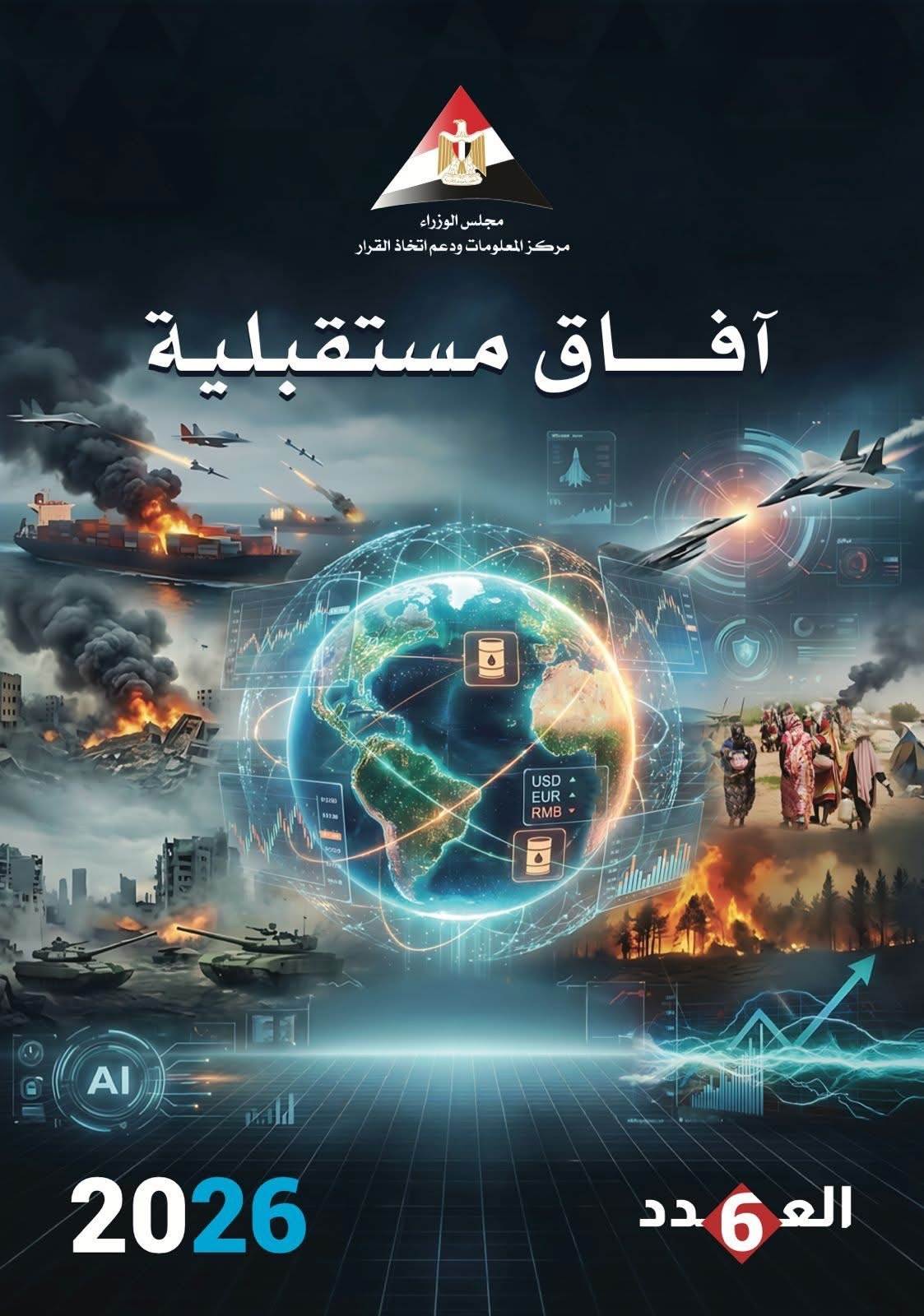 أطلق مركز المعلومات ودعم اتخاذ القرار بمجلس الوزراء، العدد السادس من إصدارته السنوية "آفاق مستقبلية"، ليرصد العدد الجديد أبرز رؤى وتحليلات الخبراء والمفكرين داخل مصر وخارجها لمستقبل عام 2026، وما قد يحمله من فرص وتحديات على مختلف الأصعدة، وذلك في إطار حرص المركز على دعم صانع القرار بأبرز الرؤى والتحليلات بشأن مختلف القضايا والموضوعات في المجالات ذات الأولوية، وفي ظل إقليم يموج بالتفاعلات وعالم تكتنفه تحديات متسارعة.