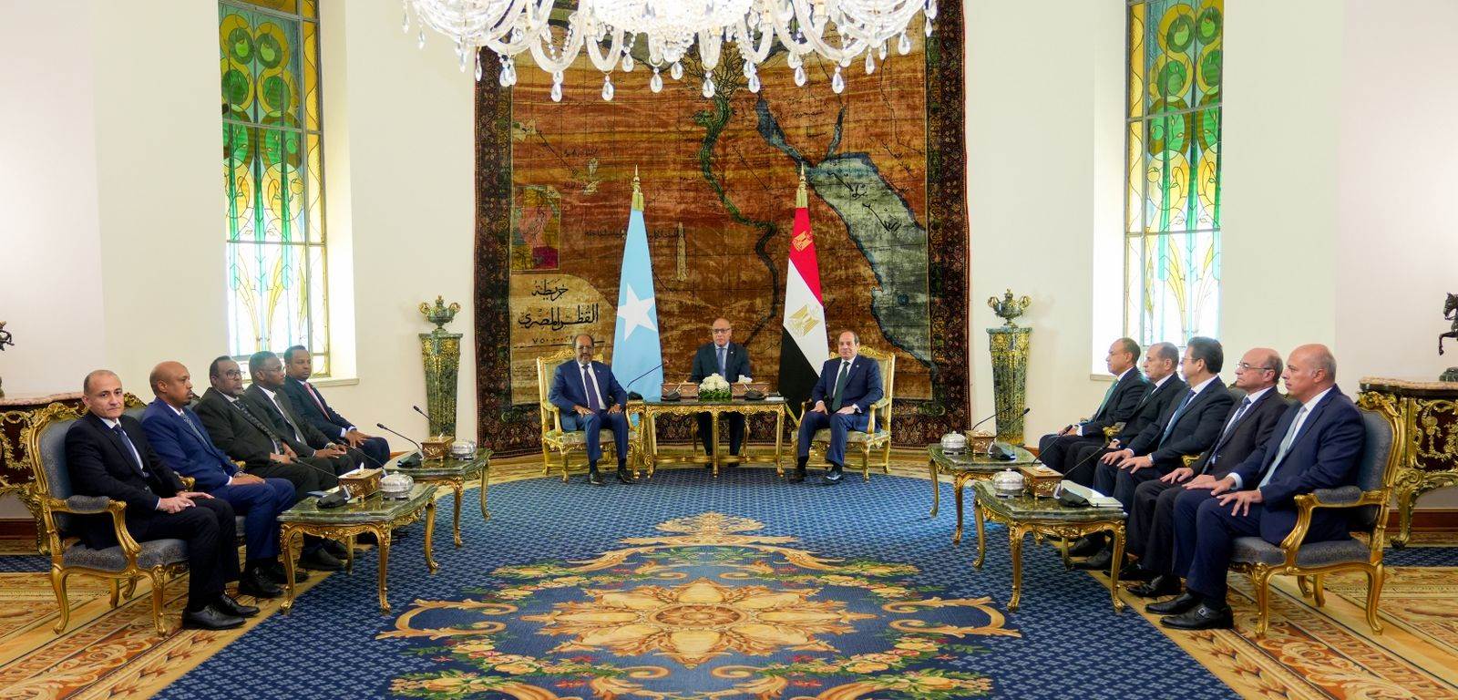من جانبه، أعرب الرئيس الصومالي عن سعادته بزيارة مصر ولقاء الرئيس، مثمناً العلاقات الأخوية بين البلدين، ومقدراً دعم مصر لوحدة واستقرار الصومال، وجهودها في تعزيز الأمن والاستقرار في الشرق الأوسط والقرن الأفريقي، مؤكداً حرص بلاده على تعزيز التنسيق مع مصر بما يخدم الأمن الإقليمي.