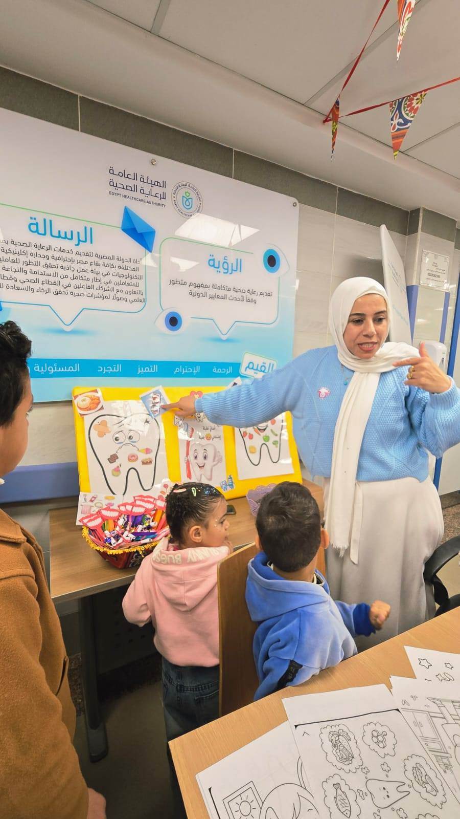 وأضاف رئيس الهيئة أن الحملة تتضمن تنفيذ فعاليات تعليمية وتوعوية تشمل أركانًا تعليمية وورشًا تفاعلية حول طرق تنظيف الأسنان، واستخدام الخيط الطبي، والعناية باللثة، إلى جانب إتاحة مواد تثقيفية رقمية عبر رمز الاستجابة السريع (QR)، بما يسهم في توسيع نطاق الوصول للمعرفة الصحية.