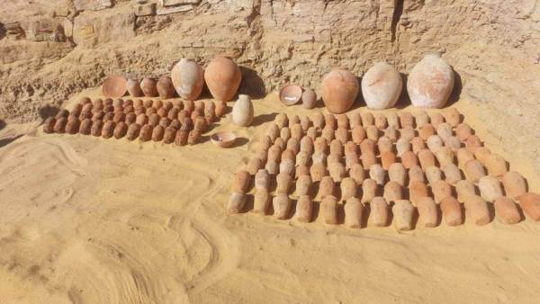 وقال الأستاذ محمد عبد البديع رئيس قطاع الآثار المصرية بالمجلس الأعلى للآثار، أن البعثة نجحت كذلك في الكشف عن غرفتي دفن بهما حوالي 160 من الأواني الفخارية متنوعة الأحجام والأشكال من عصر الدولة القديمة، أغلبها في حالة جيده من الحفظ وعليها كتابات باللغة الهيراطيقية حيث تشير الدراسات الأولية إلى أنها كانت تستخدم لتخزين السوائل والحبوب.