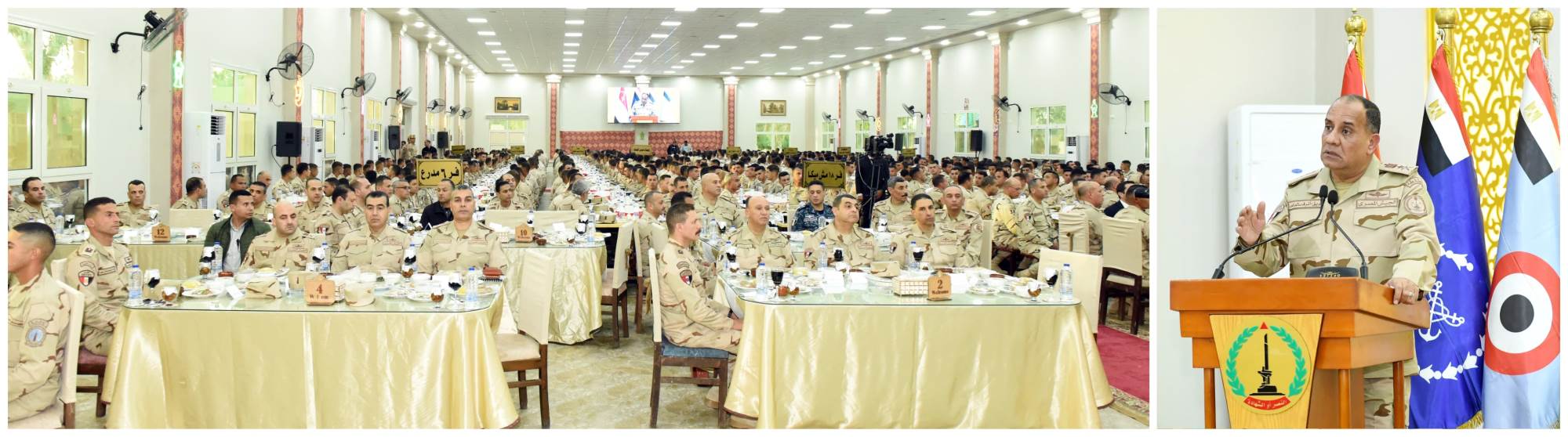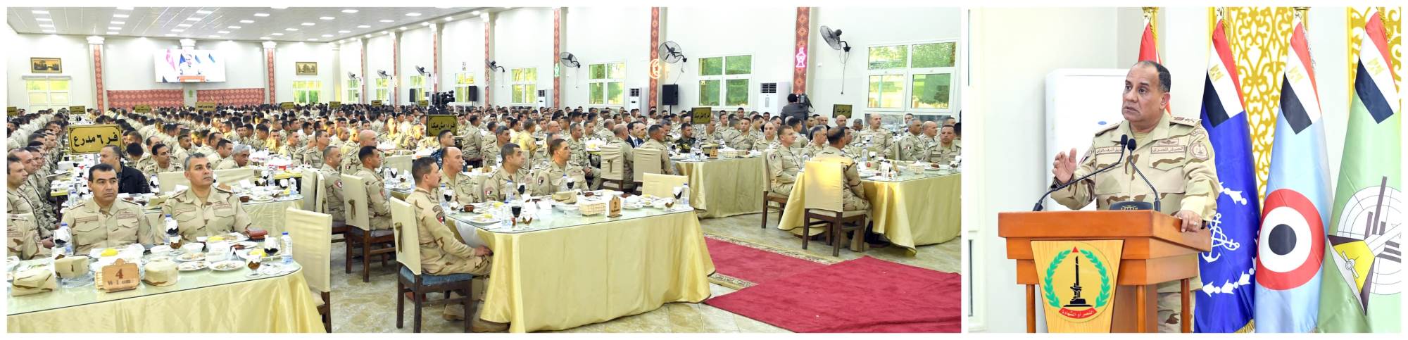 فى إطار حرص القيادة العامة للقوات المسلحة على التواصل المستمر مع رجال القوات المسلحة فى مختلف الوحدات والتشكيلات ، شارك الفريق أشرف سالم زاهر القائد العام للقوات المسلحة وزير الدفاع والإنتاج الحربى عدداً من مقاتلى الجيش الثانى الميدانى وكلية الضباط الإحتياط ومعهد ضباط صف المعلمين تناول وجبة الإفطار ، وذلك بحضور الفريق أحمد خليفة رئيس أركان حرب القوات المسلحة وقادة الأفرع الرئيسية وعدد من قادة القوات المسلحة .