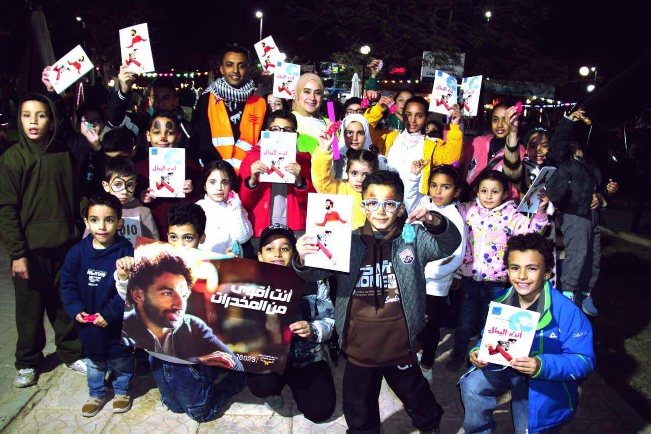 كما تم تنفيذ ورش حكي وألعاب تفاعلية متعددة للأطفال تتضمن الرسم وتلوين الكراسات واستخدام الأساليب الإبداعية التي تتماشى مع المراحل العمرية للأطفال كذلك عروض فنية ورياضية وثقافية تستهدف رفع الابتكار والتفكير لدى الأطفال وتنمية مهارات التواصل والعمل الجماعي لديهم وربط هذه المهارات بمواجهة مشكلة تعاطي وإدمان المخدرات والتحذير من خطورة التدخين، كما تضمنت الأنشطة للأطفال لعبة "السلم والدخان" التي تبرز أن من يدخن ويحاول الوصول إلى درجة متقدمة من خلال السلم لا يستطيع ،ويرجع للوراء بسبب أن التدخين والمخدرات يؤثران على صحته، في حين أن الشخص الذي لا يدخن يستطيع أن يحصل على درجات متقدمة ويحقق أهدافه، كما يستطيع أن يفكر بشكل سليم ويتخذ القرار الصحيح بعكس من يدخن، كما تم توزيع هدايا ولعب للأطفال مرتبطة برفع وعيهم بأضرار التدخين.