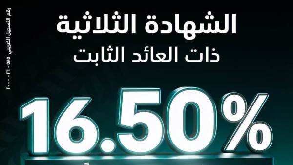 كما تتميز الشهادة الثلاثية بكون عائدها ثابت طوال مدة الاستثمار، بالإضافة إلى إعفائها من الضرائب، الأمر الذي يعزز من جاذبيتها كأحد الحلول الادخارية الموثوقة للعملاء الباحثين عن أدوات مالية مستقرة وآمنة.
